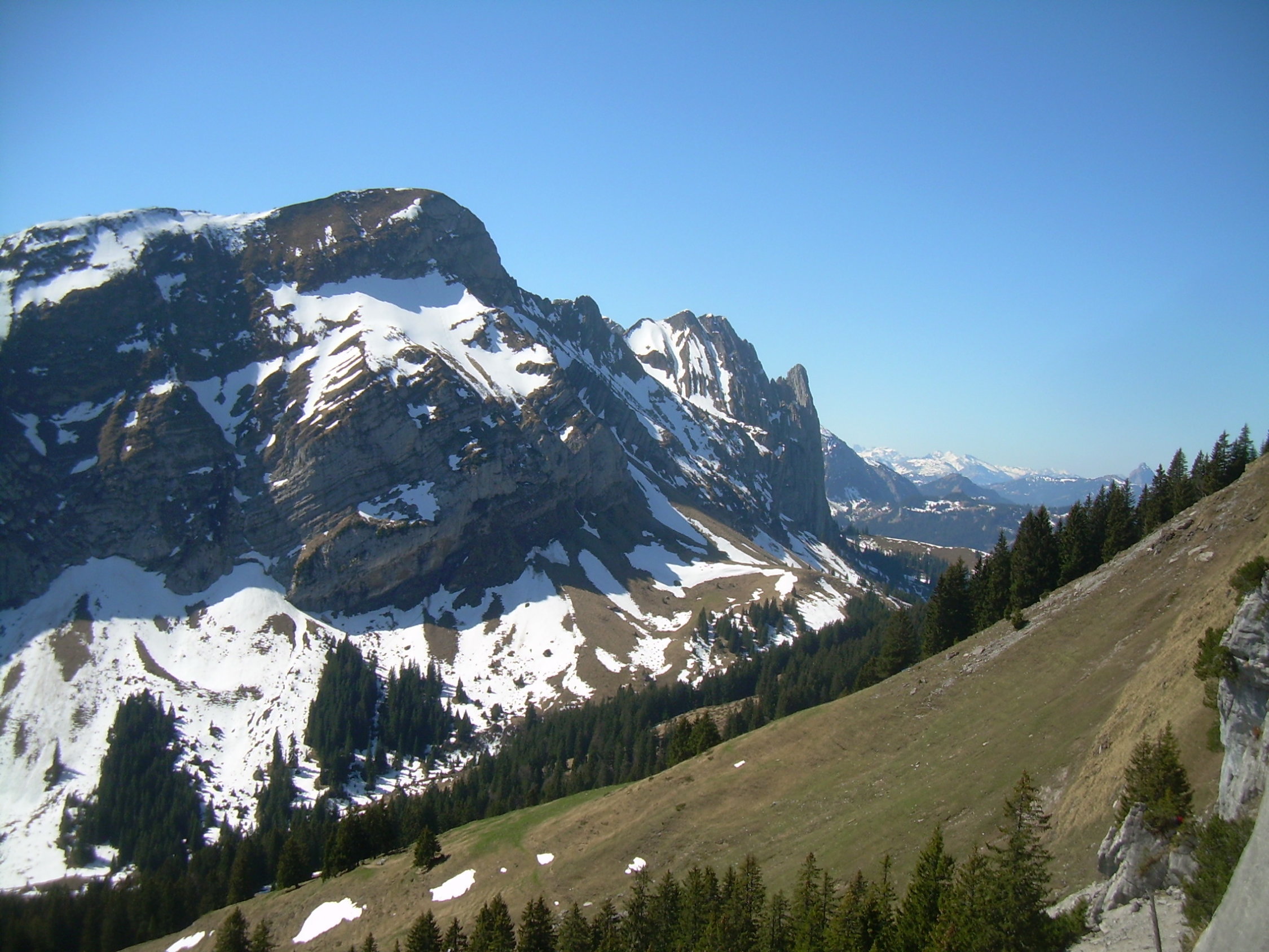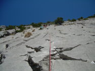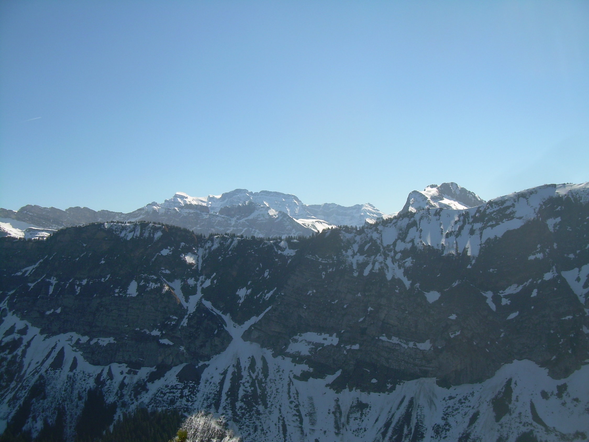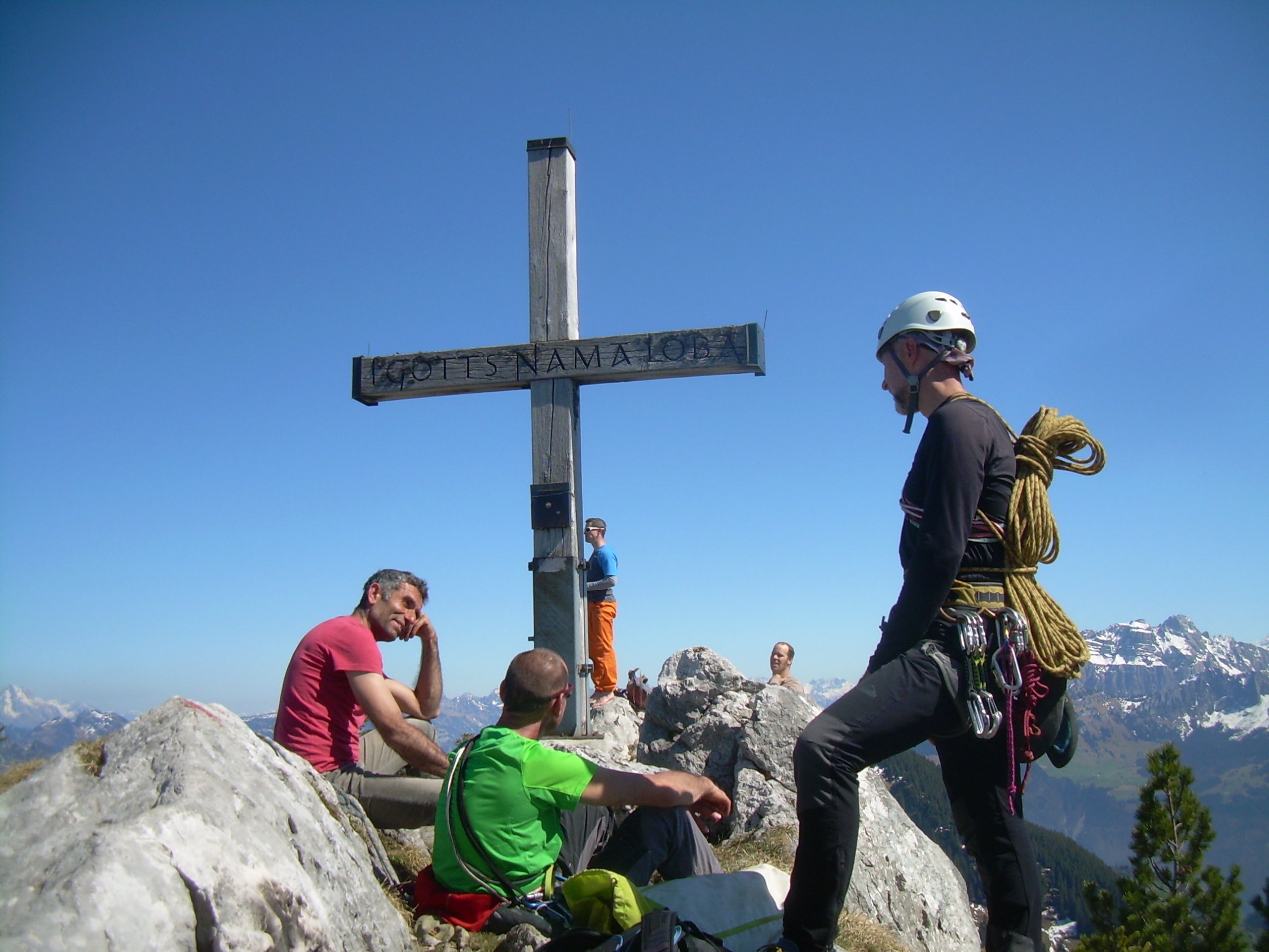 Zustieg und Einstiegsseillängen Anfang April schneefrei - das hat man nicht alle Jahre wieder am Brüggler, zumindest bis dato. Dass wir diesen Zustand in Ruhe und Frieden genießen könnten, war wiederum nur Illusion, denn der Prachttag mit um die 20 Grad plus, wolkenfrei und windstill lockte heute so manche Seilschaft auf diese eindrucksvolle Kalkplatte am Nordrand der Glarner Alpen.