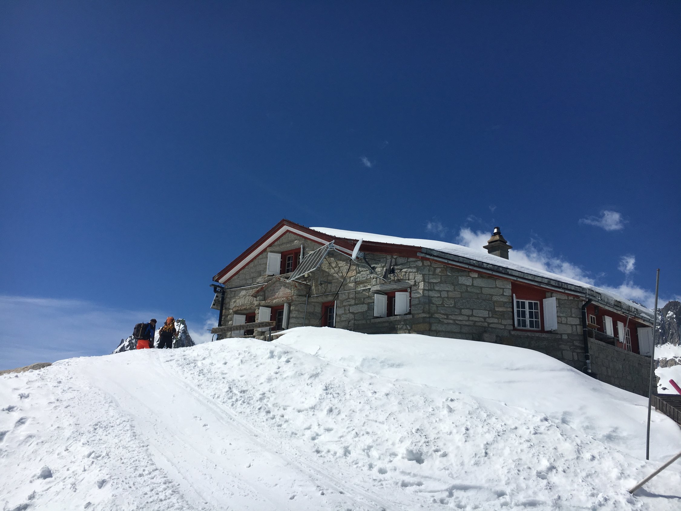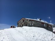 An diesem Abend übernachteten 26 Personen auf der Hütte und beim Abendessen ging es sehr laut und lustig zu. Wir sassen an einem Tisch mit Alphons, der die 3000er im Winter alleine besteigt und sich selbst dabei anseilt, sowie einer 3-er Gruppe mit Stefan aus Baden, der sich als sehr extrovertiert herausstellte. Der Rotwein floss bis spät in die Nacht, aber davon bekam ich nichts mehr mit, weil für mich bereits um 21 Uhr die verdiente Nachtruhe begann.