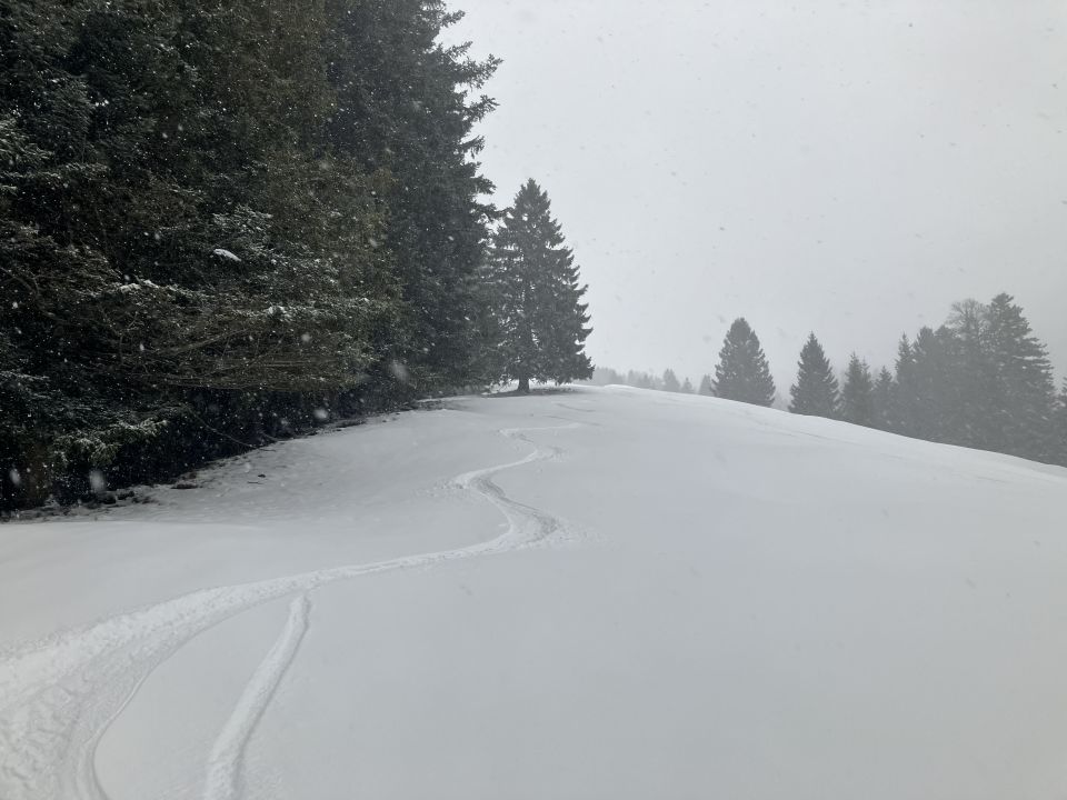 Schnee ab Talstation Gersau Gschwend. Im unteren Bereich etwas knapp, ab dem ersten Drittel gut Schnee mit Unterlage. Unterlage ist etwas harschig mit 5-10cm Neuschnee oben drauf.