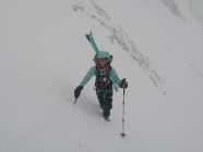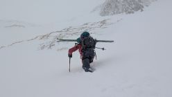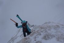 Die Hälfte der Nordflanke sind wir mit den Skis hochgestiegen, und danach mit Pickel und aufgebundenen Skis zum Ost-Gipfel. Bei diesen hochwinterlichen Verhältnissen, und Sturmböen bis 80km/h war es ein besonderes, und unvergessliches Abenteuer.