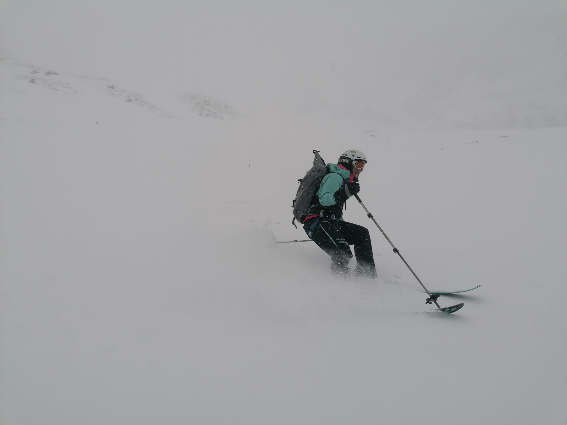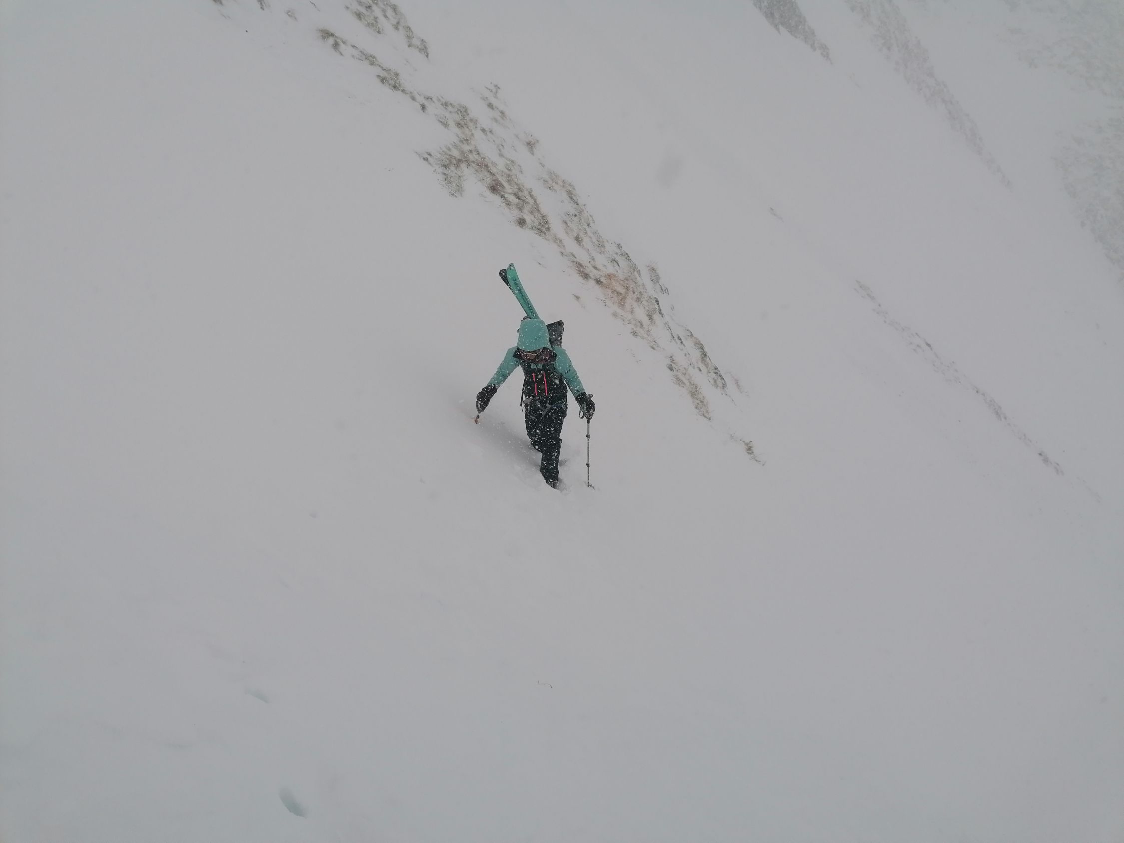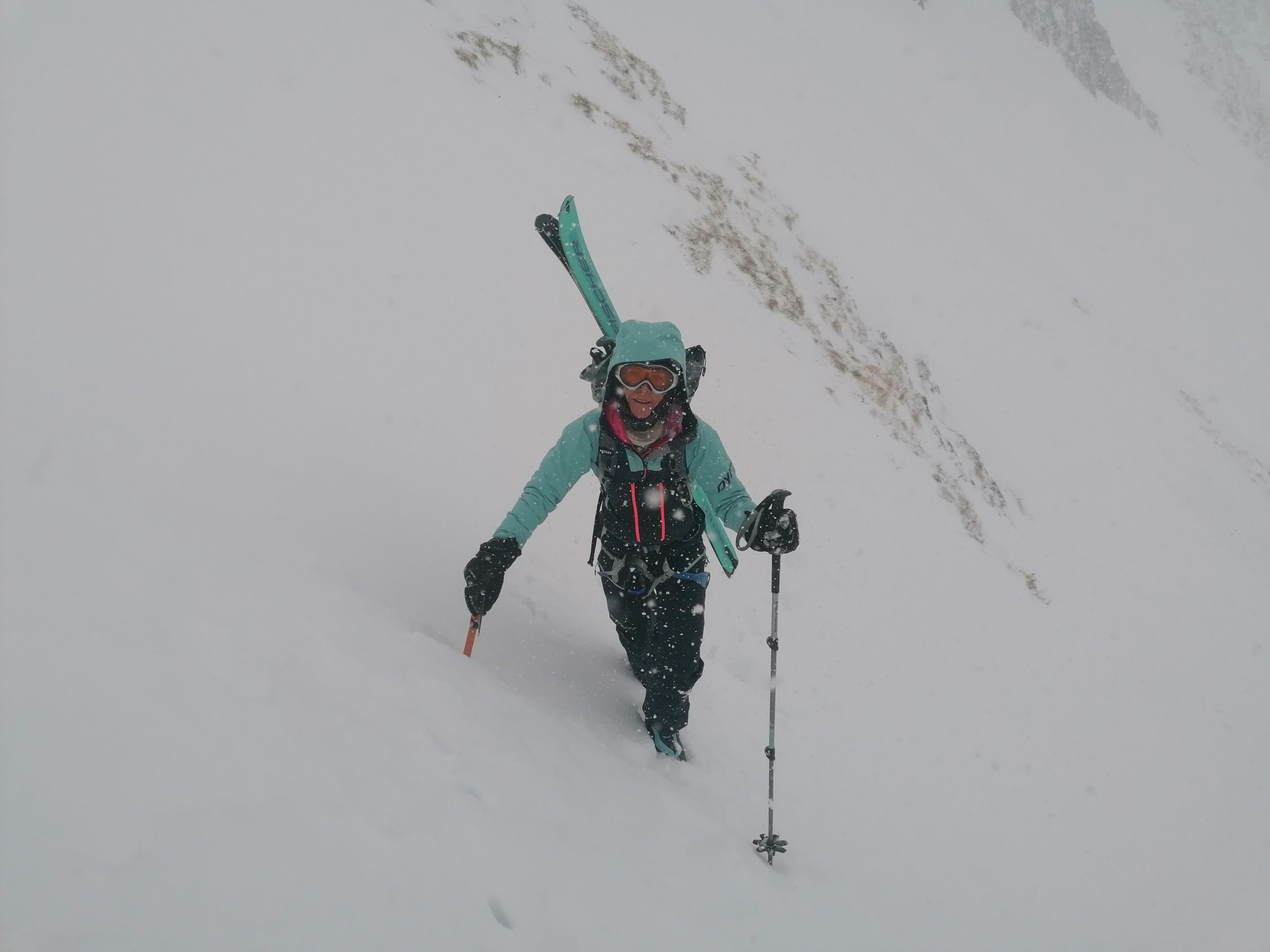 Machbar. D.h. Von den Wetterverhältnissen war es machbar: Es hatte Schneefall, starke Sturmböen (80km/H) schlechte Sicht, und die Routenführung erforderte eine laufende Beurteilung. D.h. wir trafen laufend unterschiedliche Schneearten an.