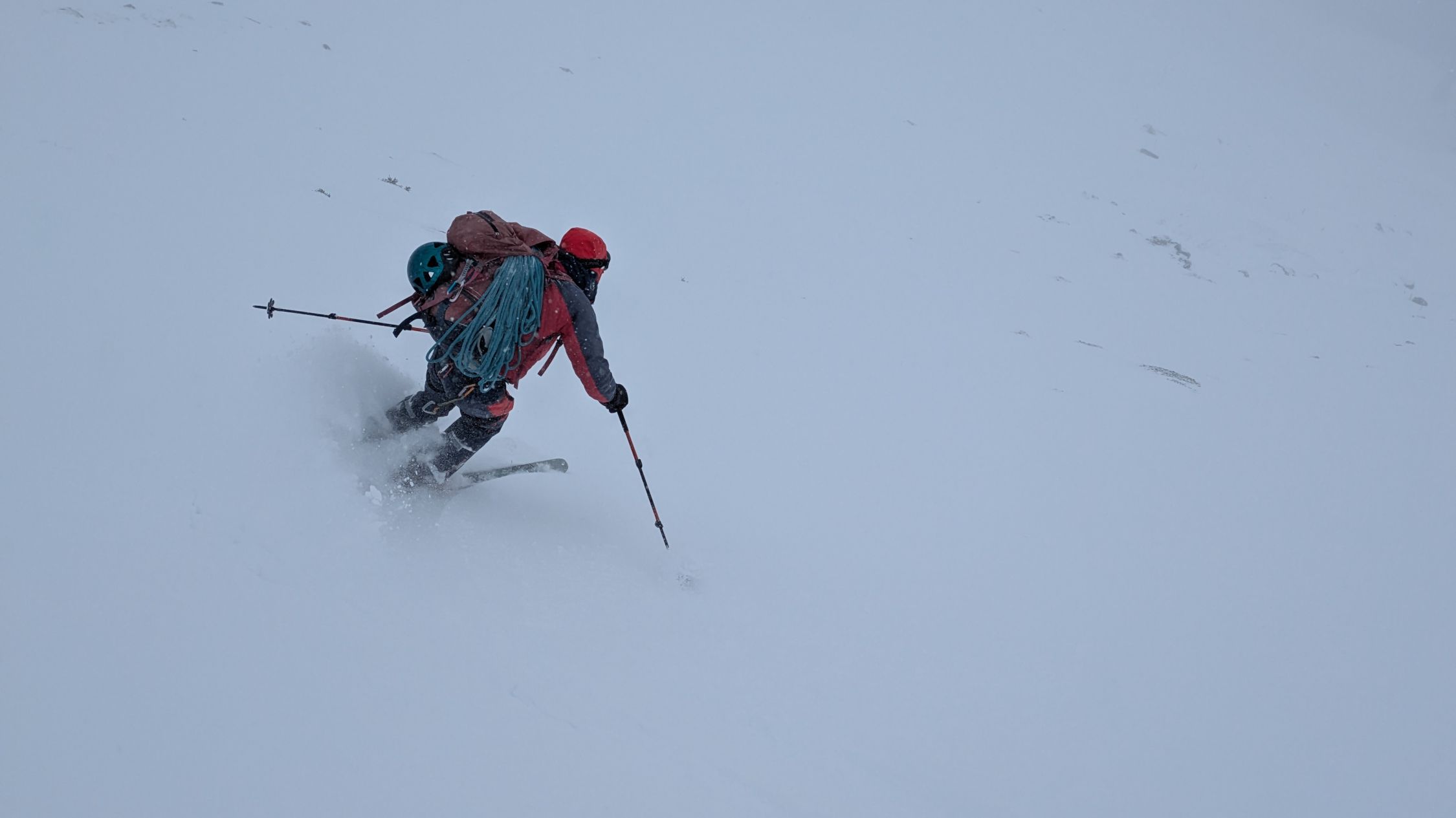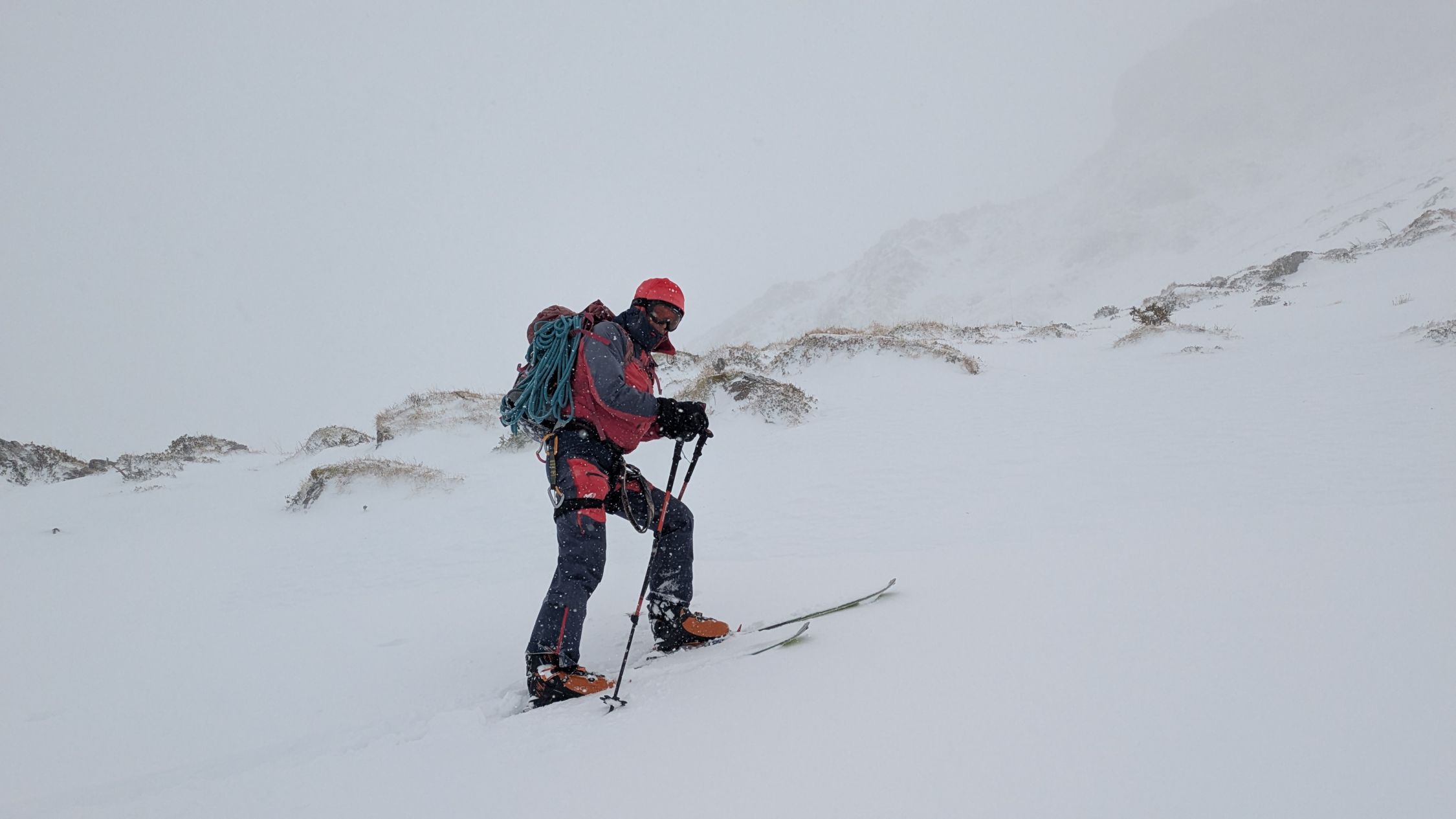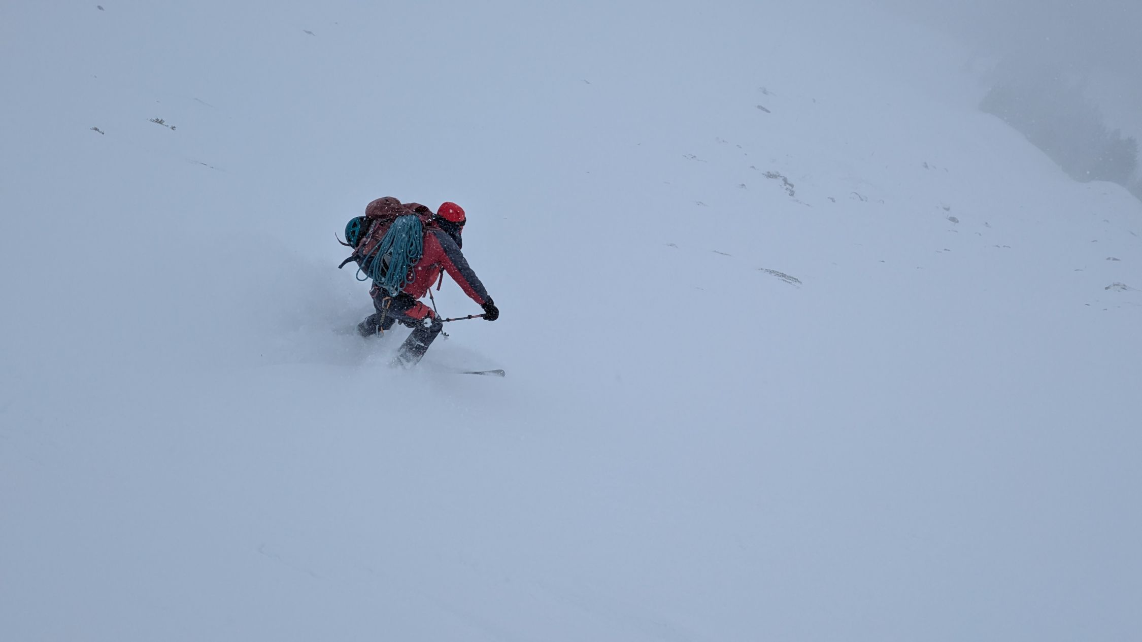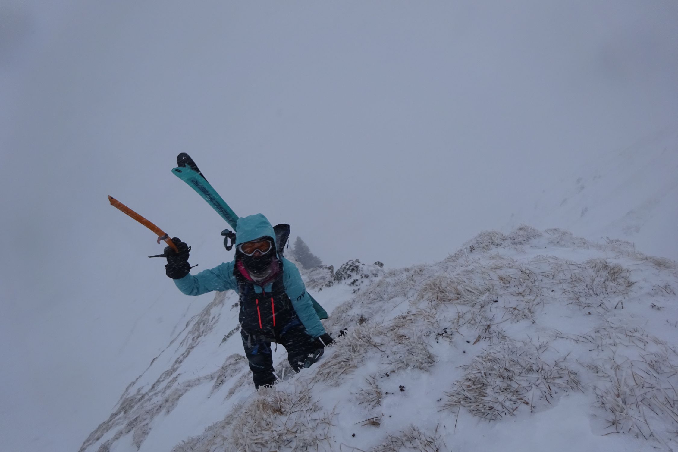 Machbar. D.h. Von den Wetterverhältnissen war es machbar: Es hatte Schneefall, starke Sturmböen (80km/H) schlechte Sicht, und die Routenführung erforderte eine laufende Beurteilung. D.h. wir trafen laufend unterschiedliche Schneearten an.