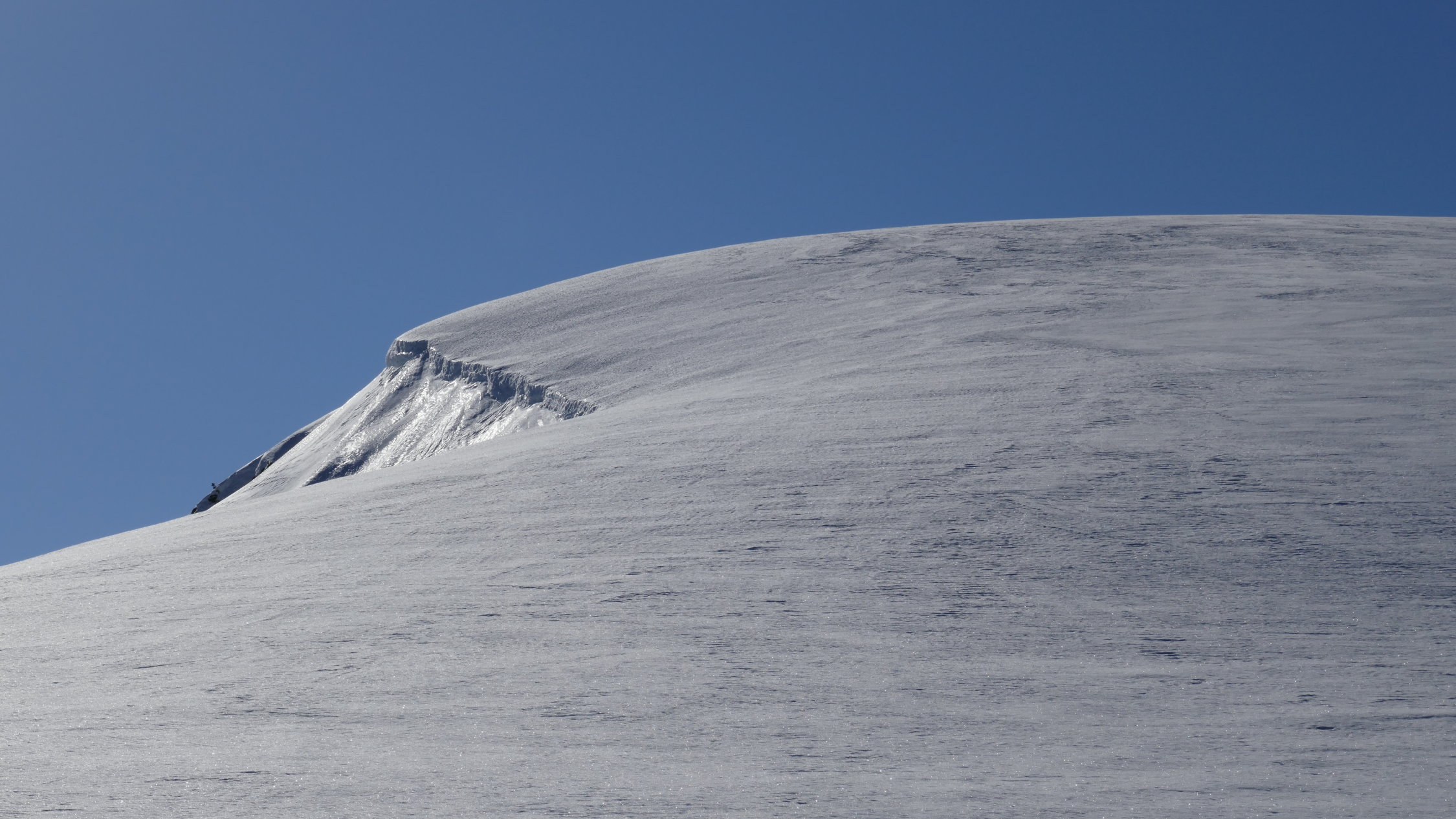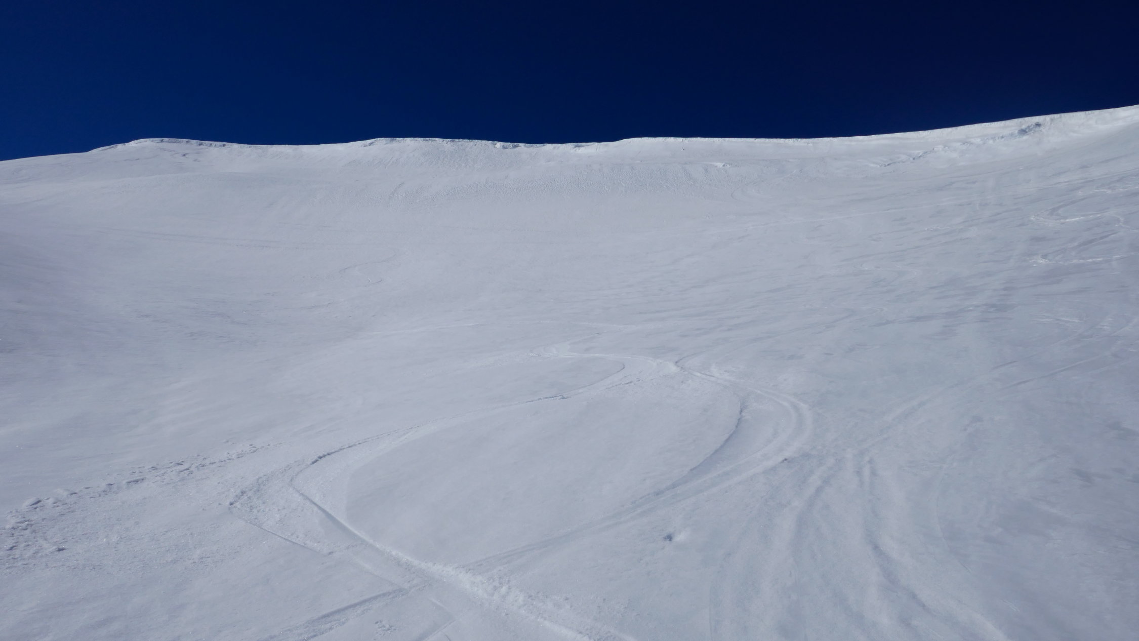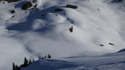Abfahrt um 10 Uhr direkt vom Gipfel fanden sich fast durchwegs schon angesulzte Hänge.