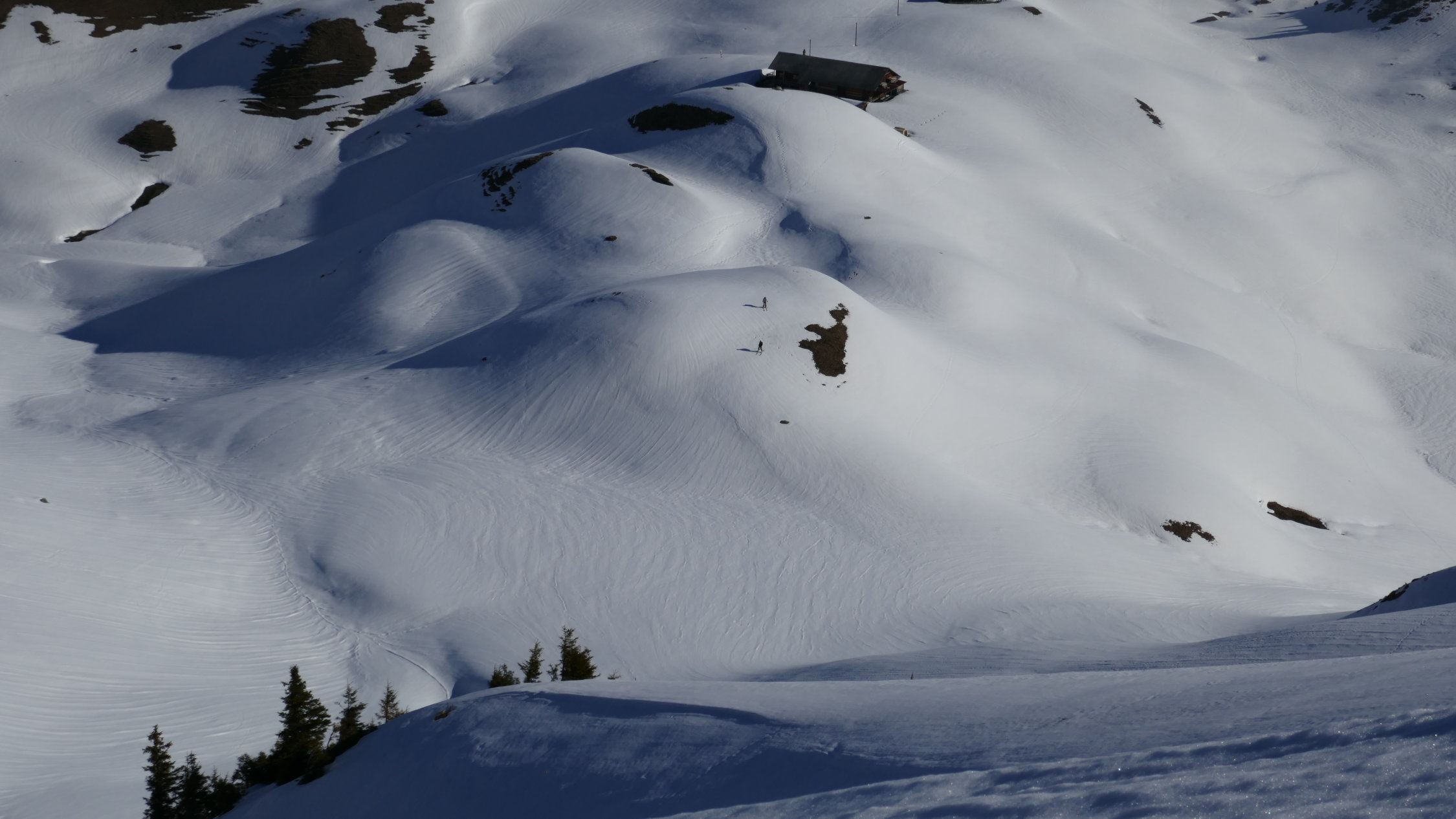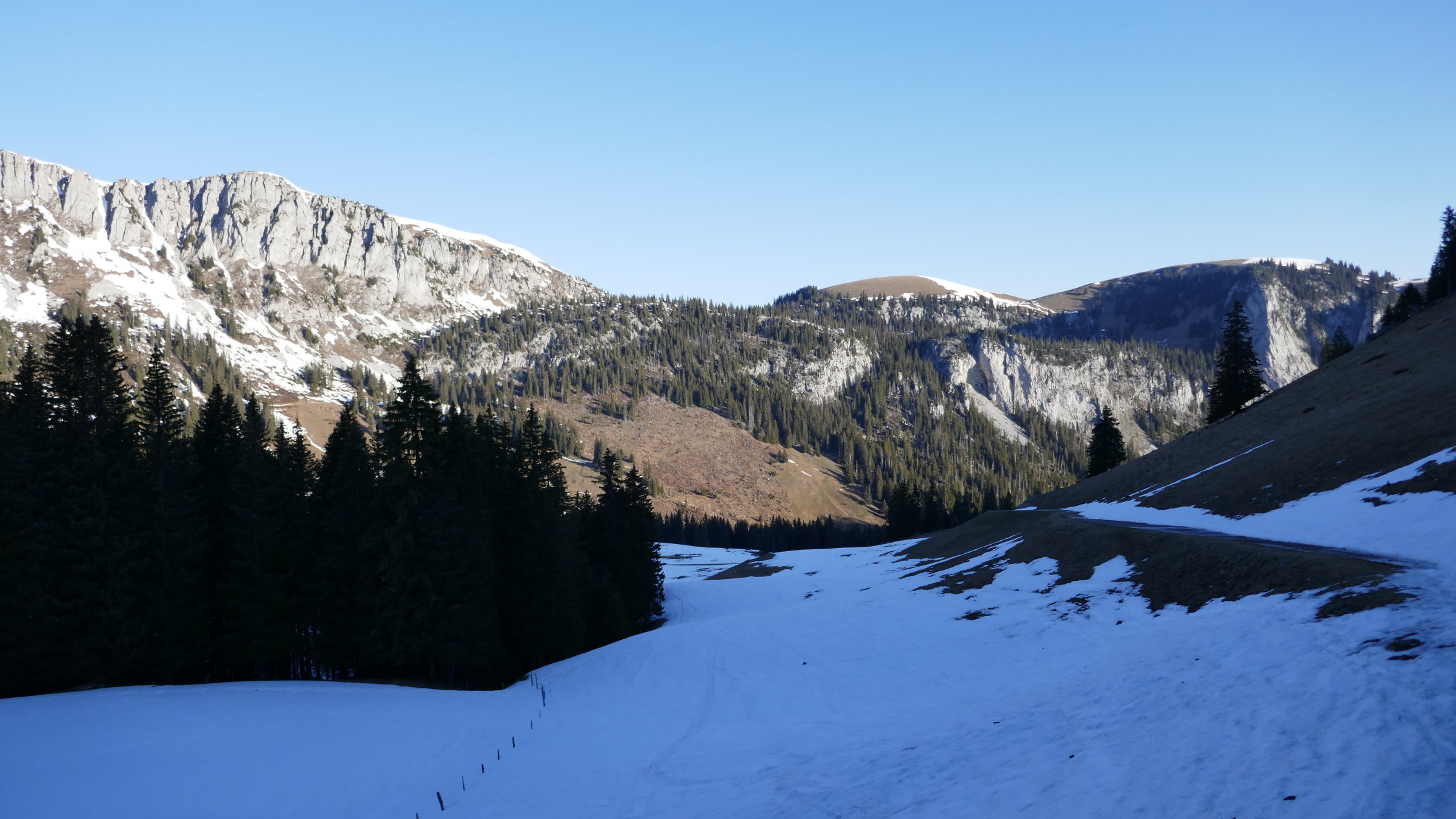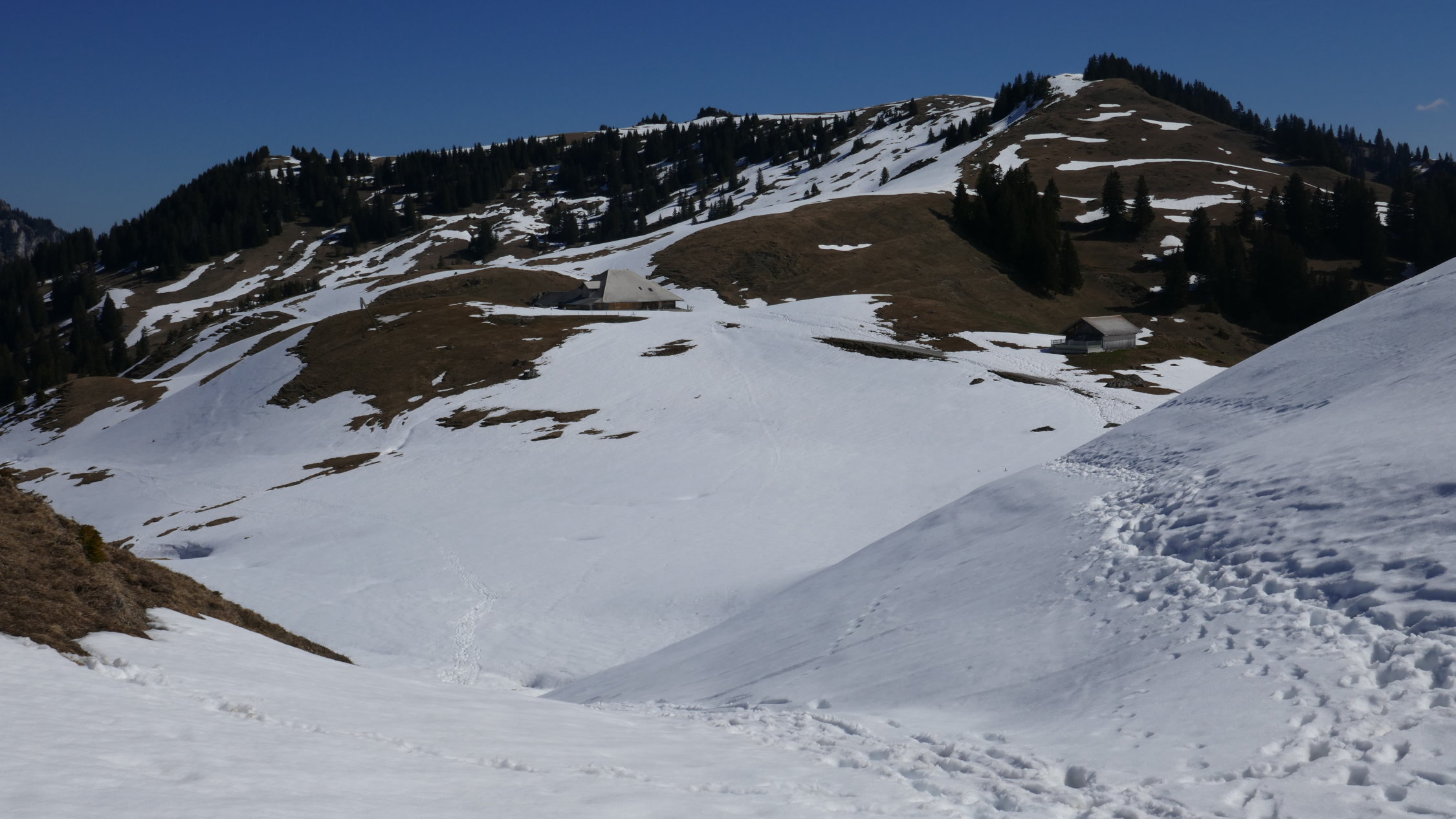 Bei der Rückkehr waren schon erstaunlich viele Wanderer unterwegs. Wenn sich diese an die Niederhore Seite (Süd-Ost und Südhänge) sind die hänge schneefrei.