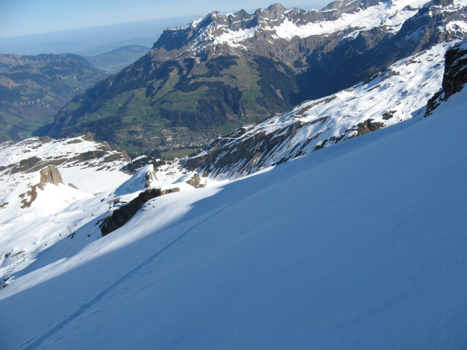 Abfahrt grandios ,Oben Pulver Unten Sulz.