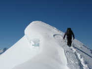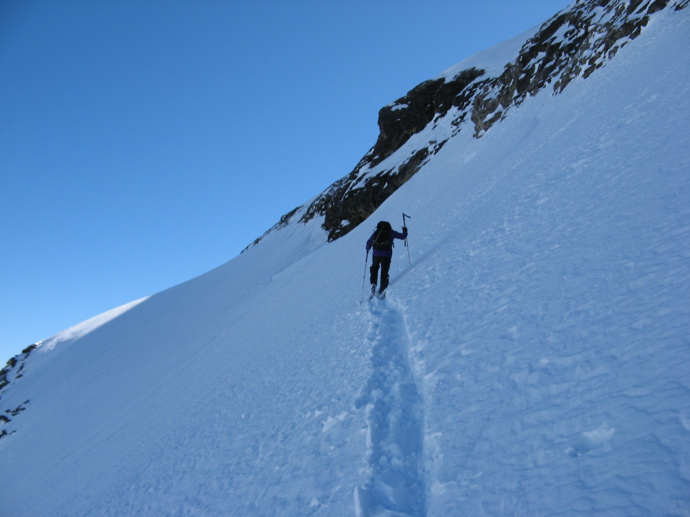 Aufstieg teils gut spurbar,teils Firn Hartschnee.