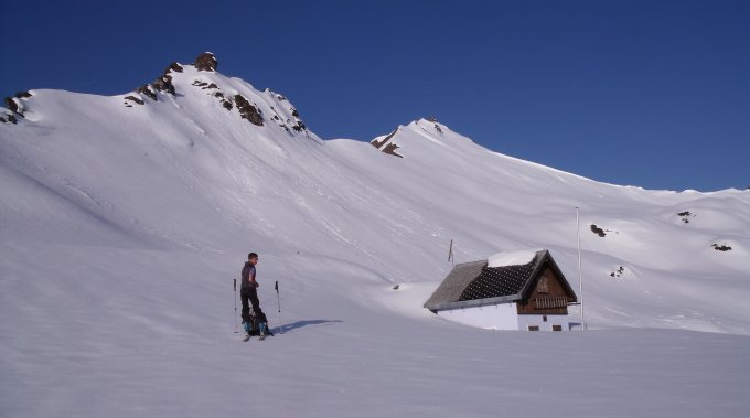 Beim Losgehen um 7 Uhr in Obersiez brach die Schneedecke im flachen Gelände durch. Mit jedem Höhenmeter und zunehmender Steilheit wurde der Schnee fester. Wir sind um etwa 9 Uhr vom Gipfel bei herrlichen Verhältnisse abgefahren. Lediglich in den letzten Höhenmetern brach die Schneedecke, war aber noch ordentlich zu fahren.