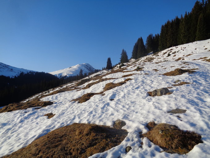 Bei St. Martin (Obersaxen) kann man mit dem Auto bis Wasmen fahren (1535m). Von dort noch ca. 20 Min. Ski tragen. Dann auf einem Schneeband auf dem Wanderweg durch den Wald (2-4 Tragestrecken). Ab Ende Wald durchgehende und gut gefrorenen Schneedecke, auf der Sonnenseite jedoch bald weich. Letzte Meter unter dem Piz Lad 5cm nasser Neuschnee, der sofort stollte. Bei der Abfahrt bin ich wieder über den Bergrücken auf die Titschalroute und über die Vorderalp abgefahren. Wunderbare Verhältnisse - oben noch etwas Pulver, dann weicher, aber tragender Sulzschnee.