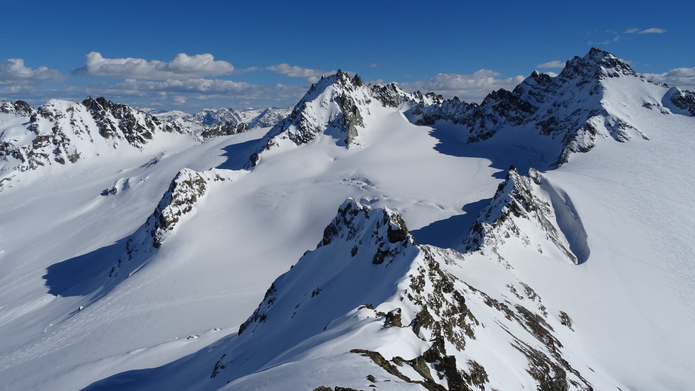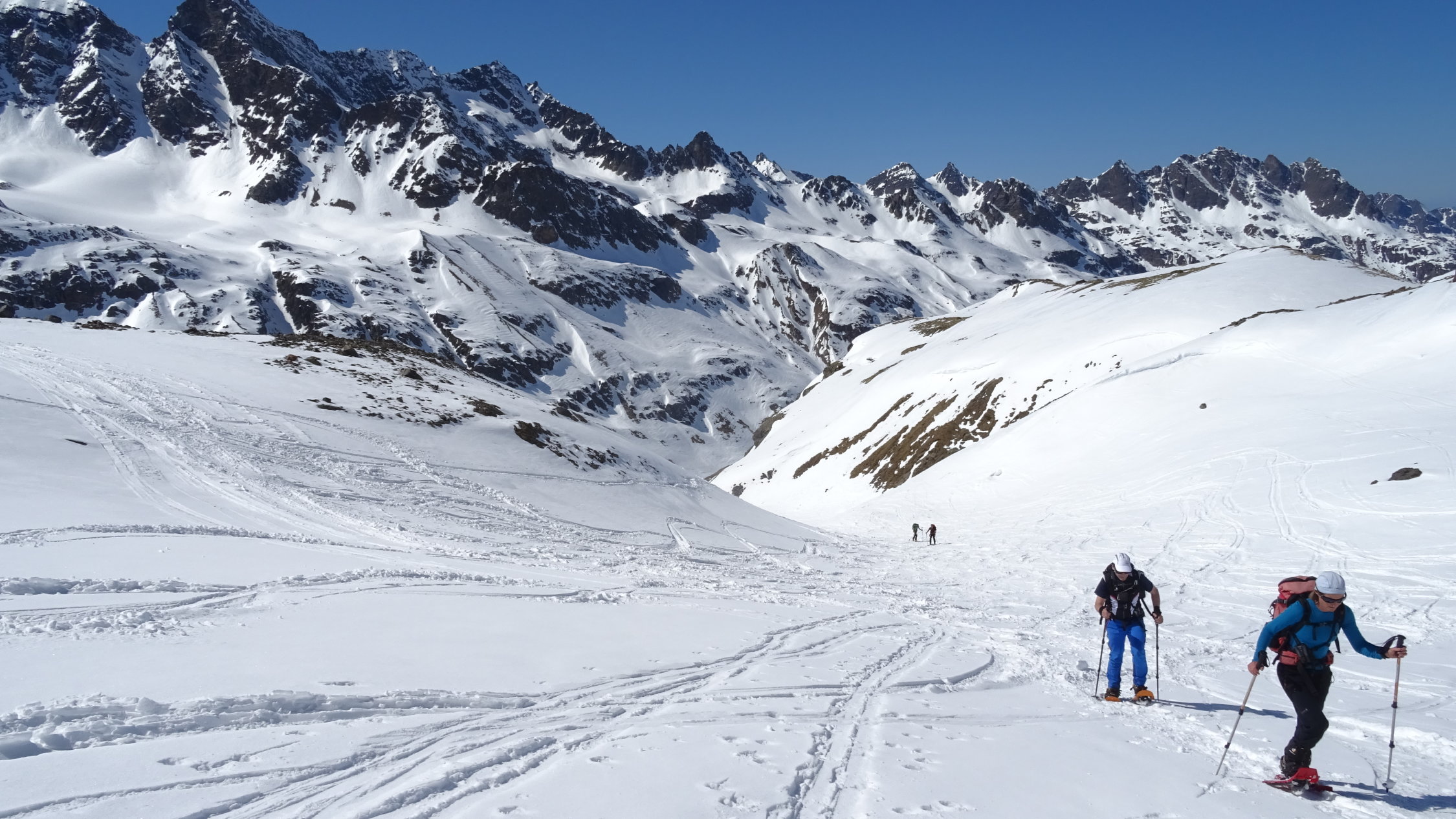 Bis zur Tiroler Scharte sehr gut gespurt durch die vielen Tourengänger welche ab der Scharte zur Jamtalhütte abfahren oder von dort aufgestiegen sind. Deutlich weniger Spuren führten zum Gipfel. Wir mussten uns durch haltlosen Schnee in der Nordflanke wühlen bis im Felsbereich der Schnee besser gesetzt war. Der Gipfelgrat war gut verfestigt.
