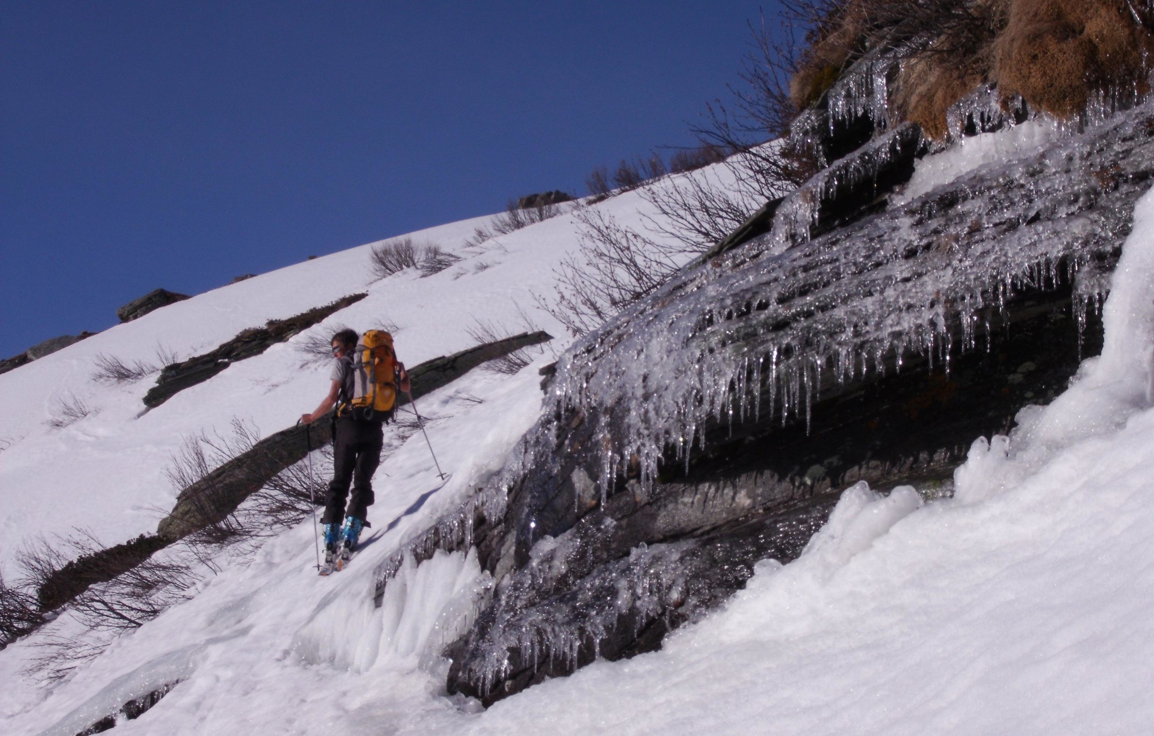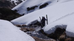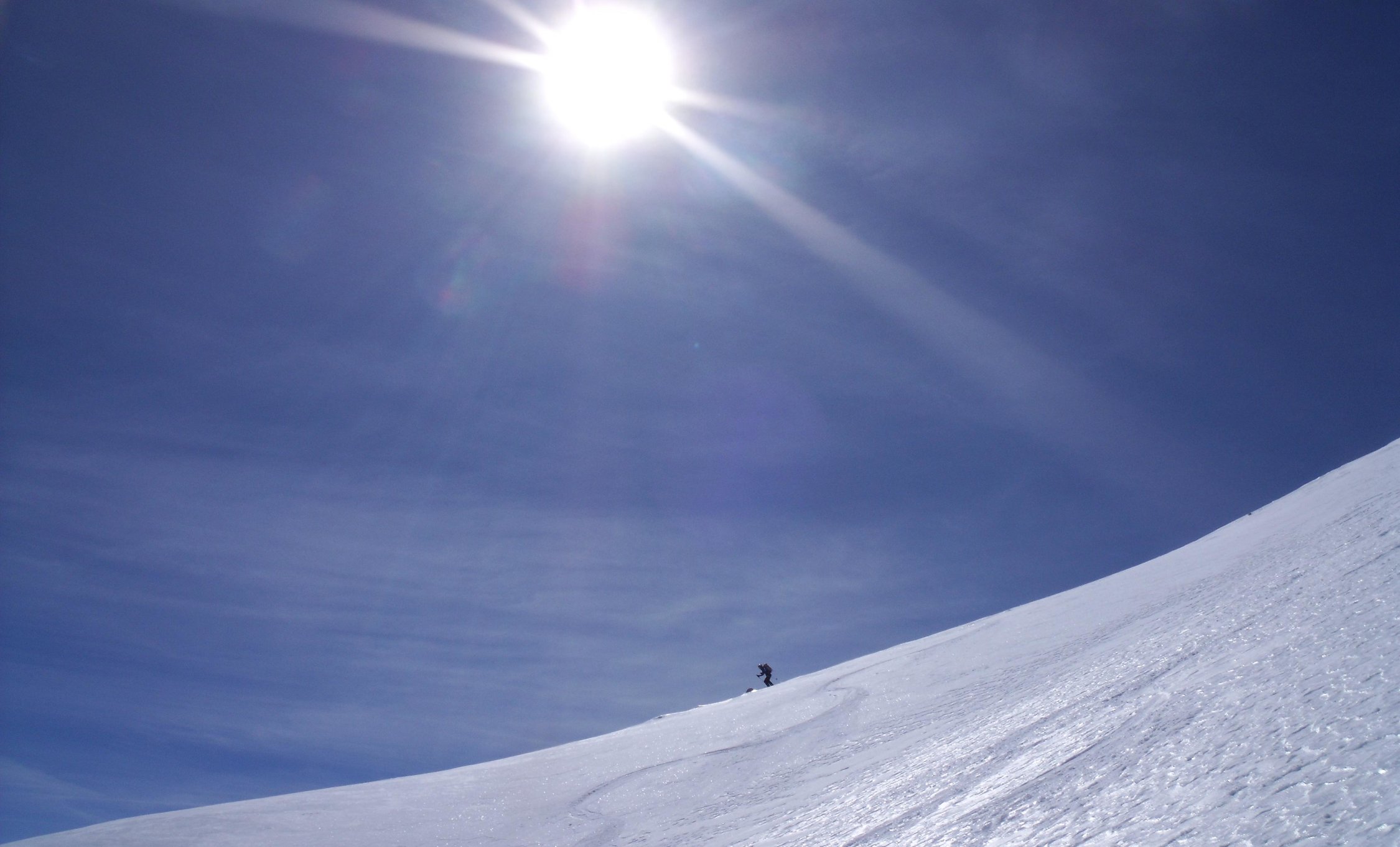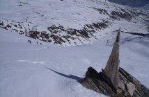 Die erste Stunde mussten wir tragen - wohl aber auch in Unkenntnis der Tour! Dann beste Verhältnisse im Aufstieg und auch in der Abfahrt. Harscheisen waren nie notwendig.