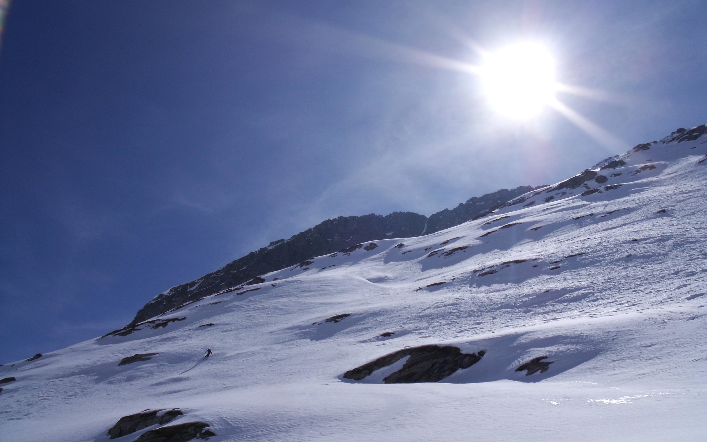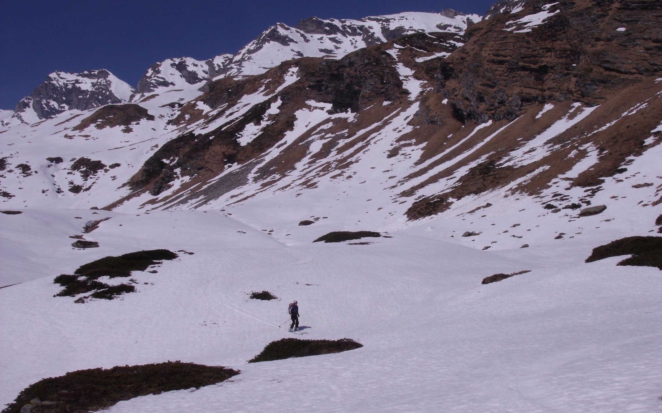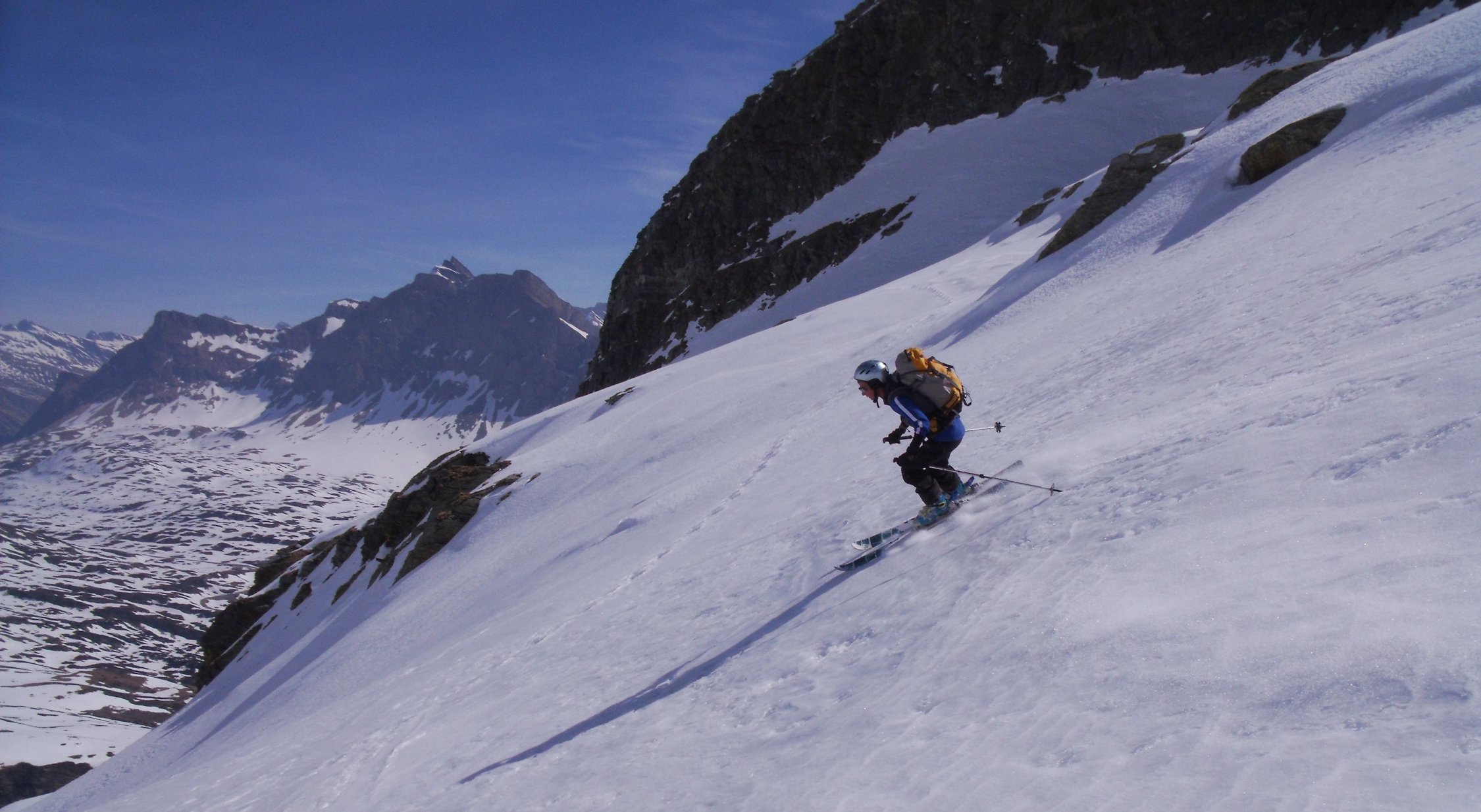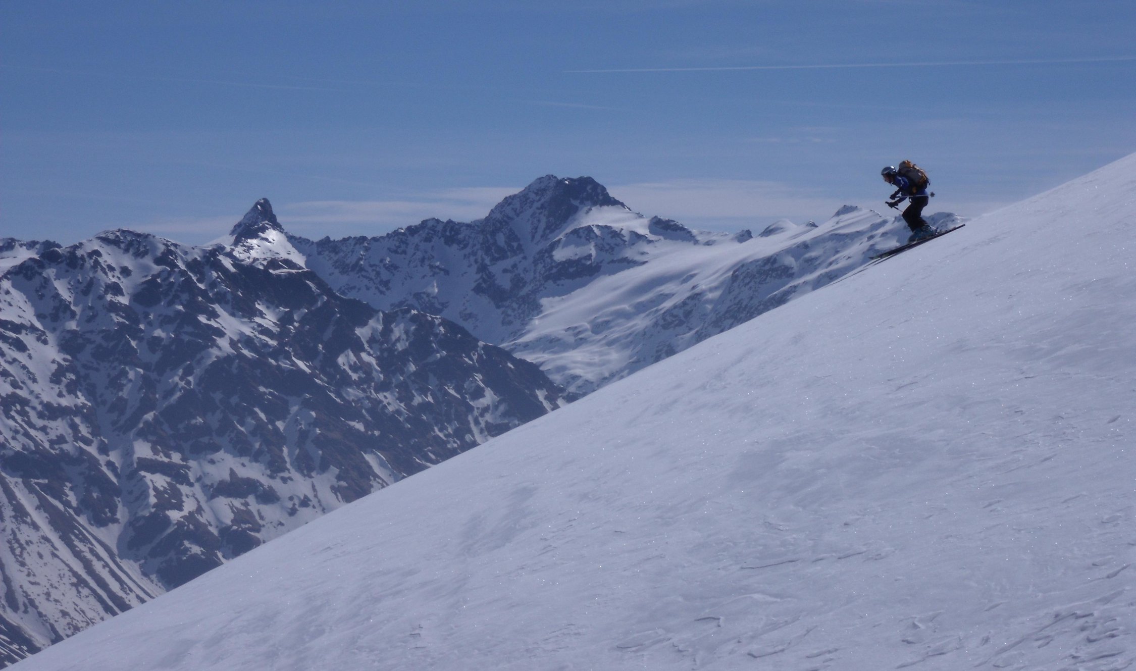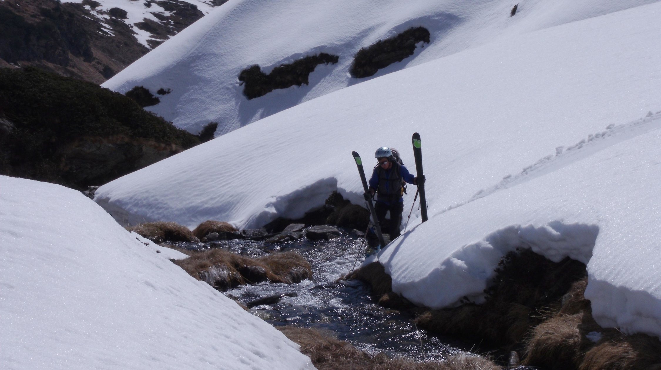Die Abfahrt ins Bec de Mucia war eine gute Entscheidung. Wir sind zum Ca de Muca abgefahren und erkannten, dass die Abfahrt rechtsseitig der Moesa bis weit hinunter gut möglich gewesen wäre. Na ja - wieder einmal etwas Lehrgeld bezahlt!