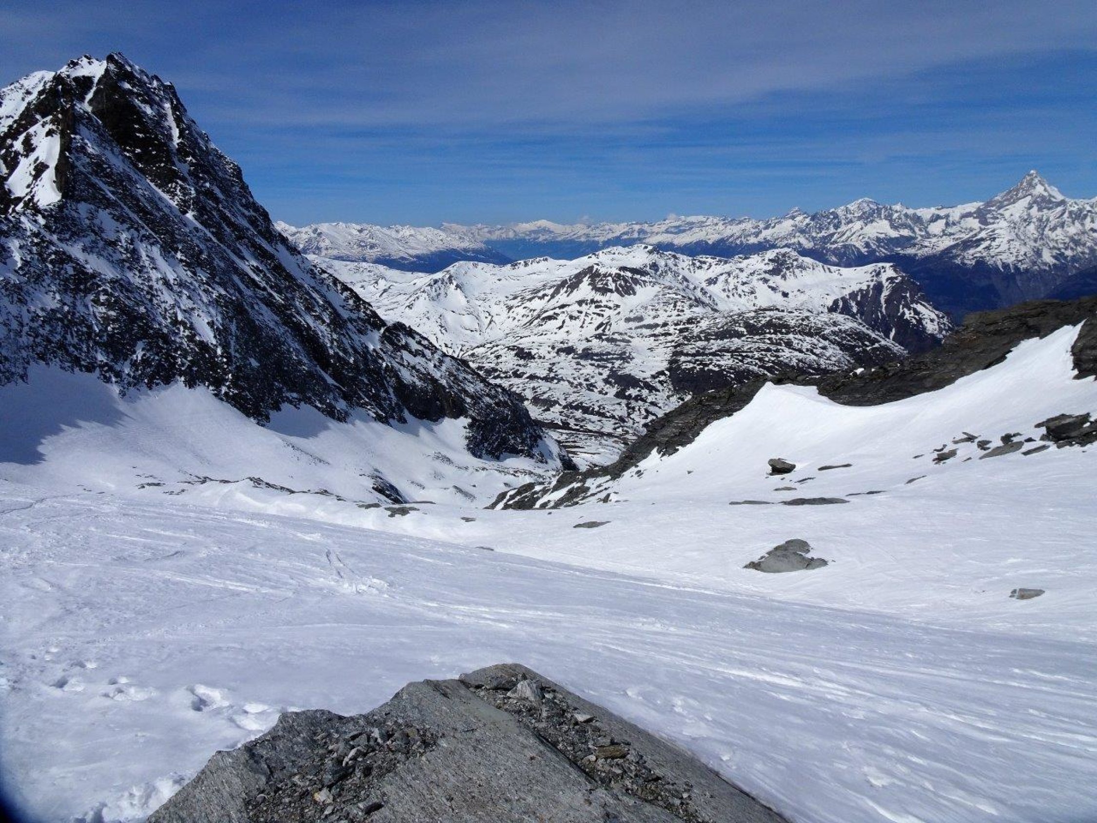 bis zum nächsten Schneefall, wenn er dann noch kommt, wohl gleichbleibend. Die Region wurde rege besucht - die vielen Spuren zeugen davon. Auch Böshorn und Galehorn haben viele Spuren.