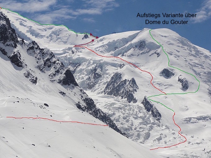 Die Mehrheit der Alpinisten begeht die Alternative via Dome du Gouter Nordgrat.