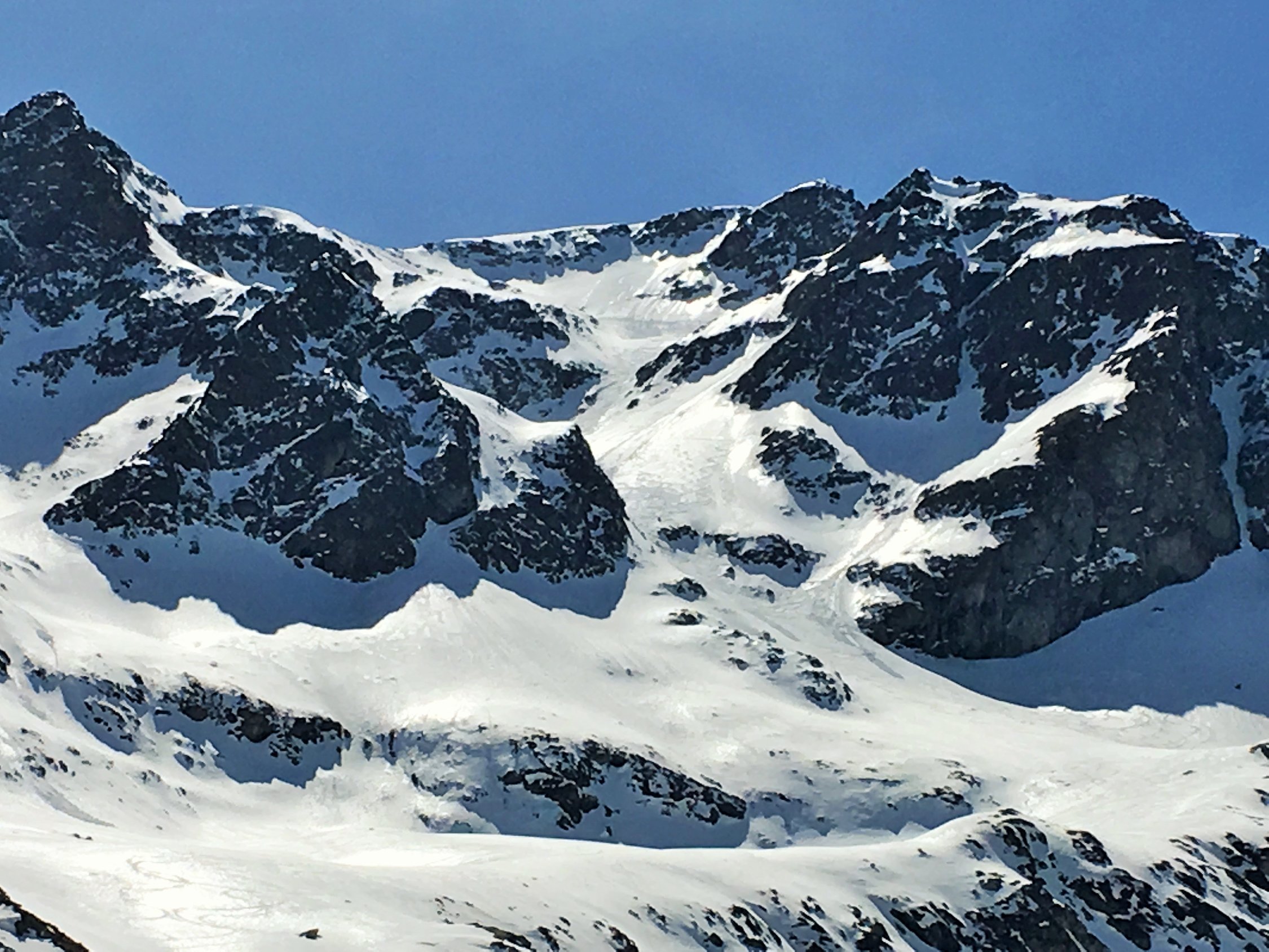 Sehr gute Bedingungen. Bin um 06.15 von der La Veduta los und auf der ganzen Route Hartschnee. Im Aufstieg in der Ostflanke nach P. 2581 mit Ski inkl. Harscheisen und im oberen sehr steilen Teil bequem ohne Steigeisen und Pickel zu Fuss auf die breite Schulter. Trotz Schneckentempo war ich um 9.15 Uhr auf dem Gipfel. Herrliche Rundsicht. Abfahrt um 9.45 Uhr, zuerst auf Aufstiegsroute, dann das erste Ostcouloir südlich Aufstiegsroute und weiter westlich P. 2581 nordwärts in schönem Gelände zur Julierstrasse P. 2067. Meist Hartschnee. Ich wollte eigentlich die Nordostflancke abfahren, aber im unteren Teil Bruchharst.