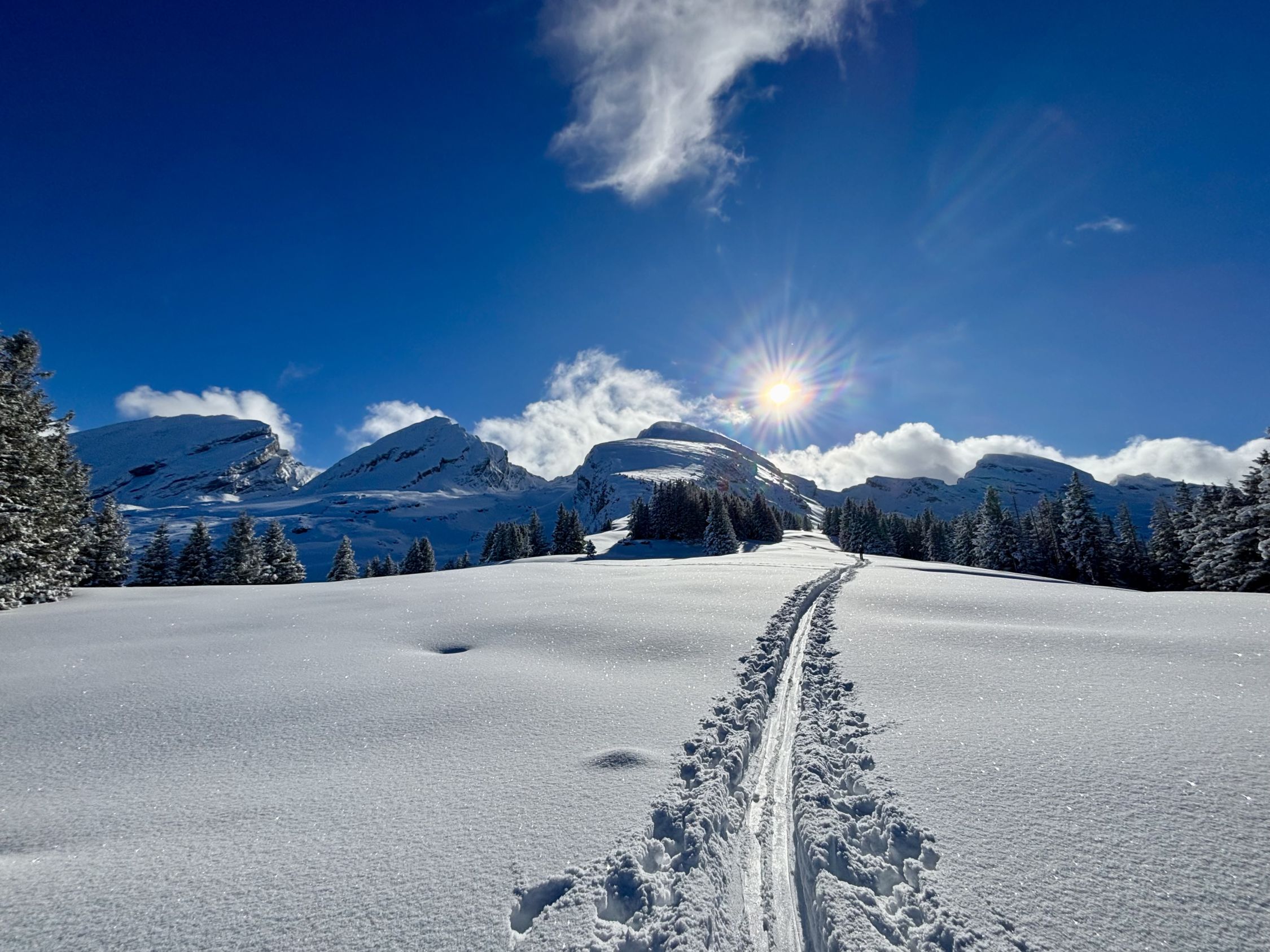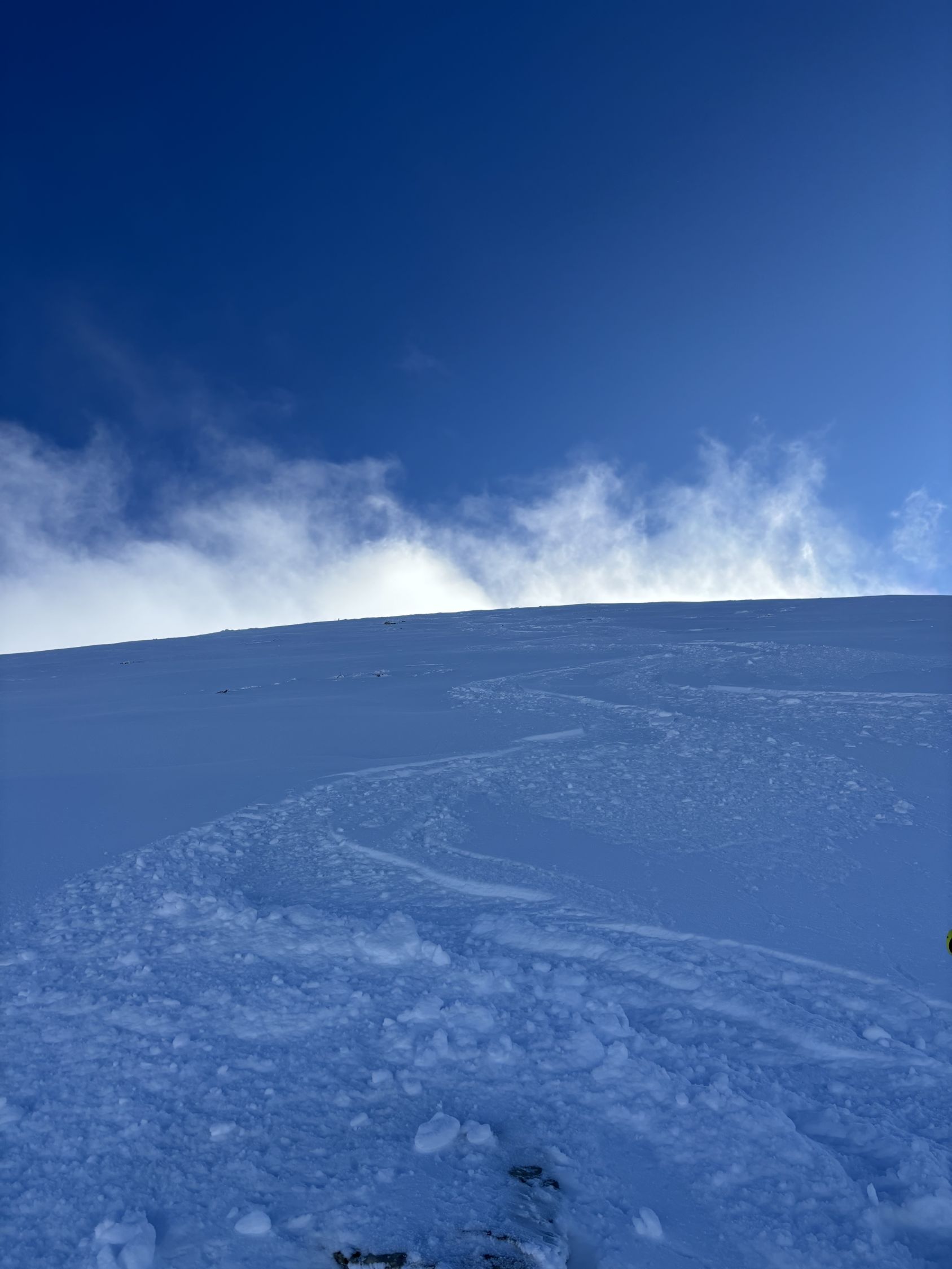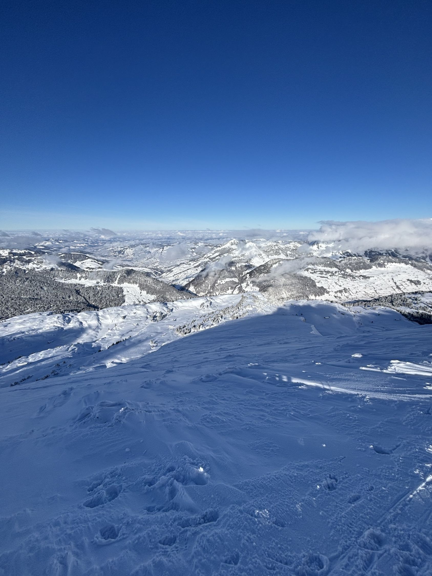 Im unteren Teil bis zur Bergstation der Seilbahn ca 60cm Neuschnee. Ab da aufgrund des starken Westwinds abgeblasen. Der Gipfelhang hat kaum Unterlage, der Neuschnee ist sehr ungleichmässig verteilt (5-40cm). Bei guter Spurwahl kann man aber ausgezeichnet powdern! Triebschnee haben wir nirgendwo gefunden, war alles locker-fluffig.