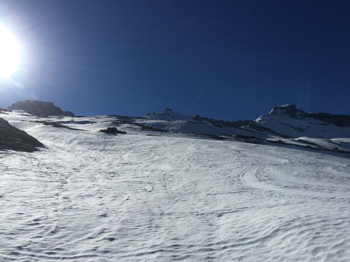 Obgleich viel weniger Schnee liegt als andere Jahre um diese Jahreszeit, bleiben die Touren im Gebiet noch länger gut, sicher mal bis zum Saisonschluss der Engstligenalpbahn.