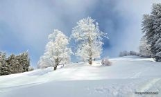 Morgens grau, ab Mittag Aufhellungen und etwas Sonne. Am Start hatte es zirka 20 cm Neuschnee ohne Unterlage. Ab 600 m dann etwas mehr Neuschnee mit Unterlage. Auf guter Spur bis zum Gipfelkreuz - danke den Spurenden.