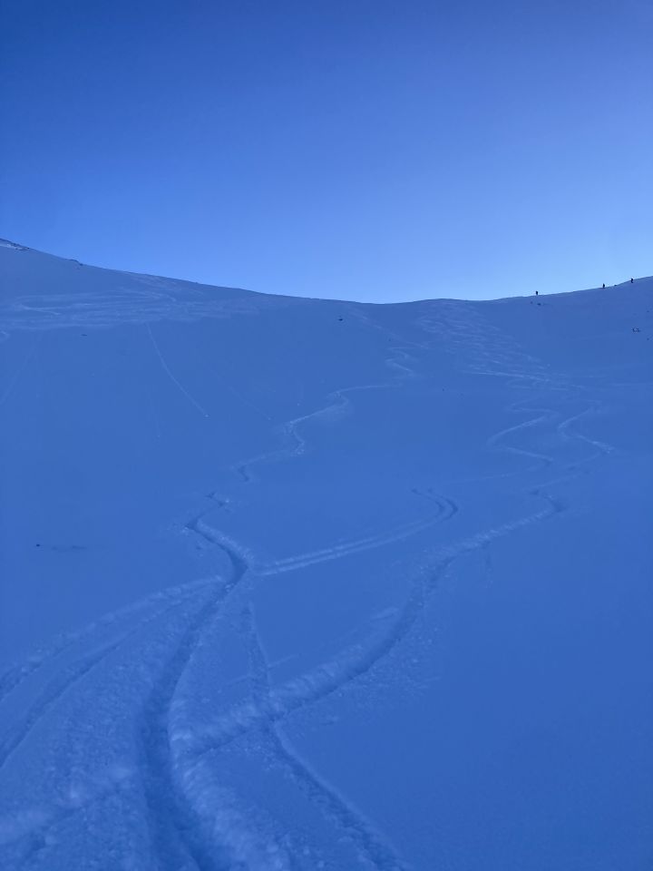 Von Vermol weg 40 bis 50cm Pulver. Unten wenig bis keine Unterlage, oben gute Unterlage. Es waren schon viele Leute unterwegs. Westwärts hat es noch freie Plätze (Achtung: Immer ausserhalb Wildschutz bleiben). Von P1460 bis Vermol eher schon eine Piste, aber gut zu fahren.