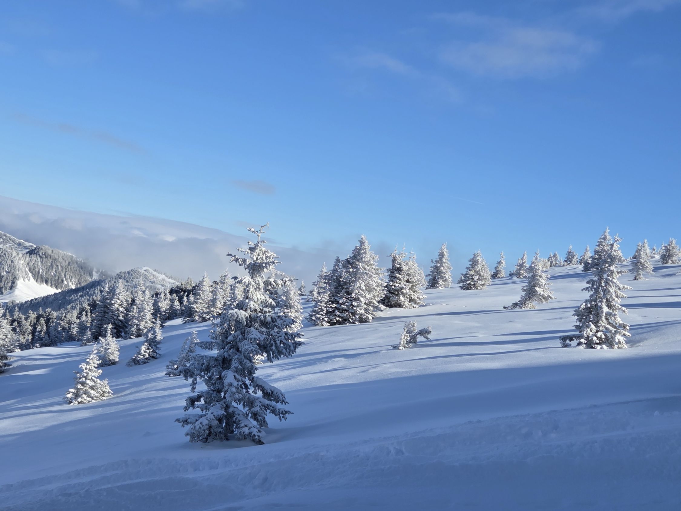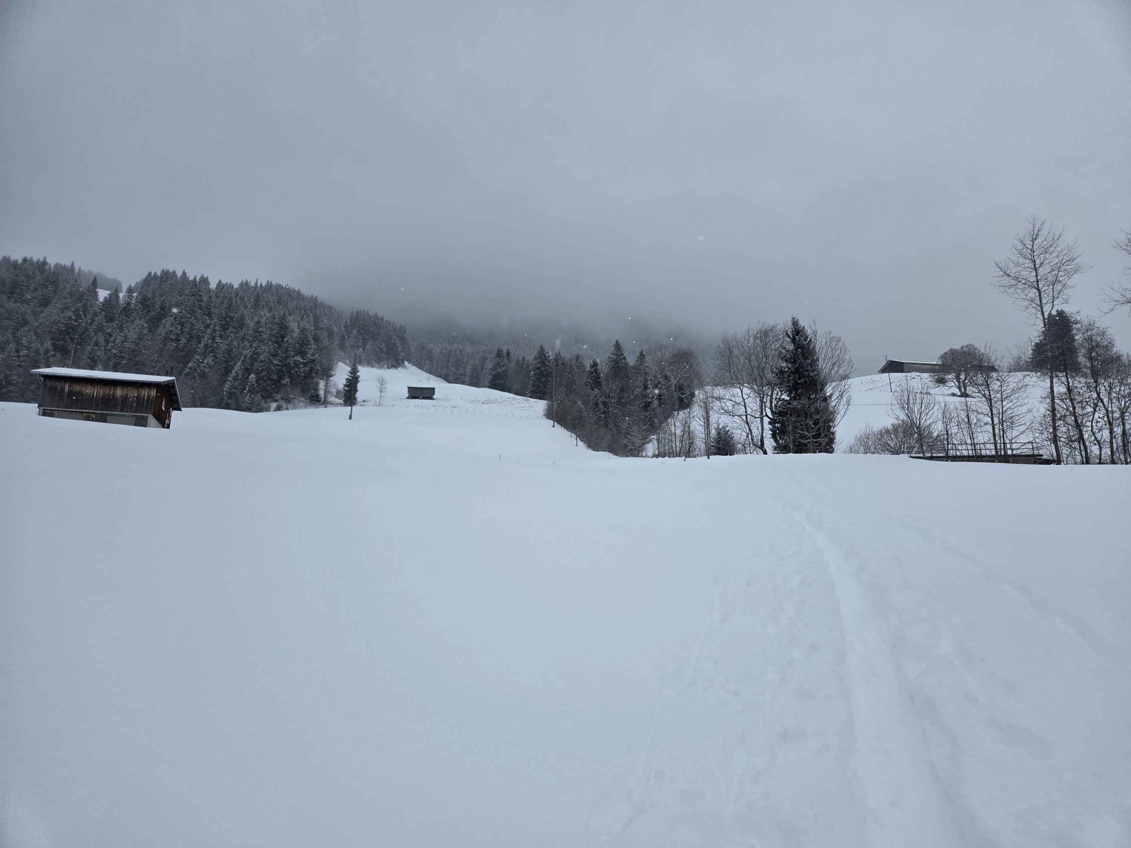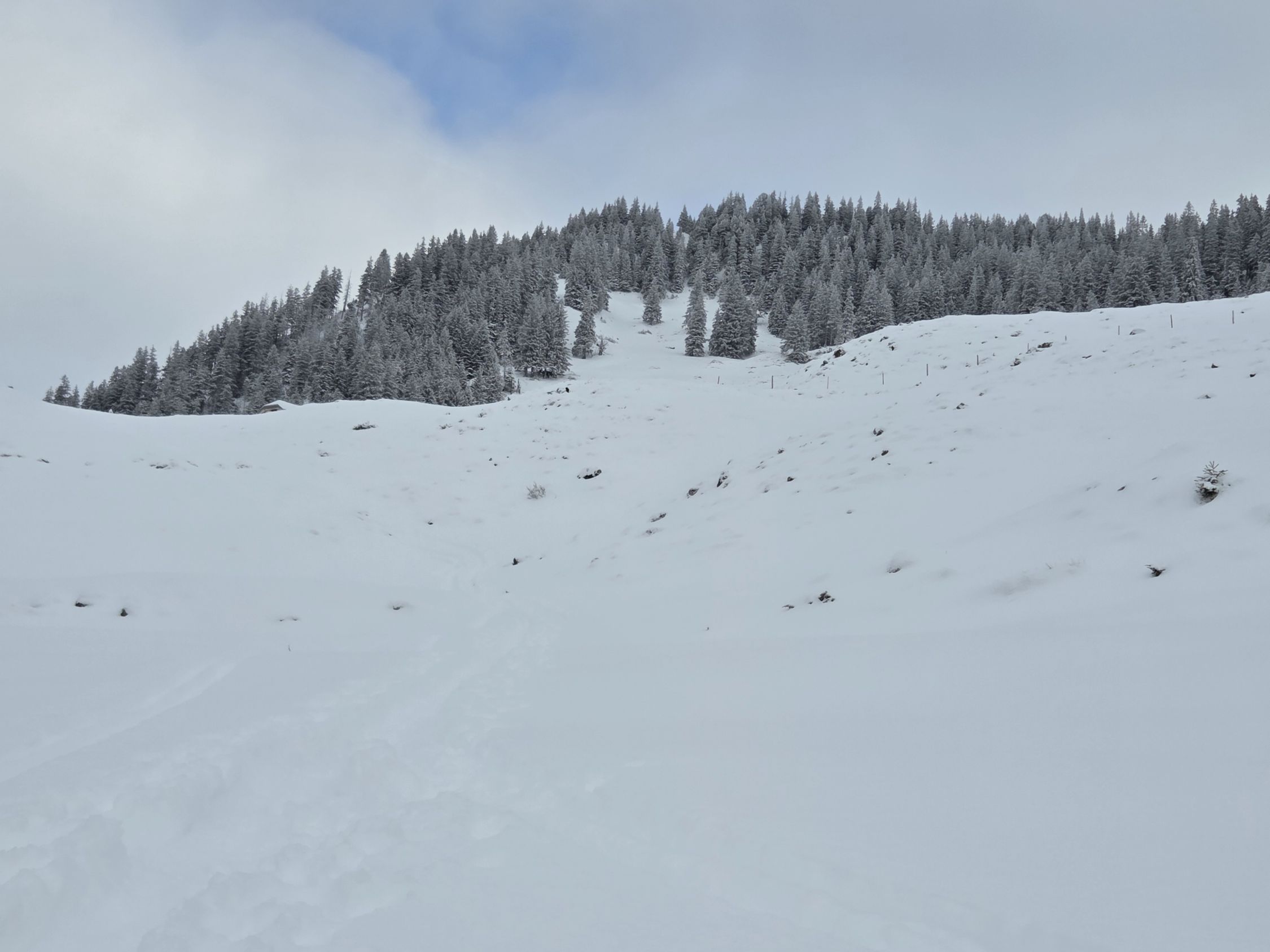 Wir haben uns dann entschieden, Richtung Gitzloch / Flühli abzufahren. Hier hats wirklich viel Schnee. 30-40cm super Pulver. Jedoch zuviel Schnee für die eher flache Abfahrt. Muss sich noch setzen. Daher viel gestöckelt.
