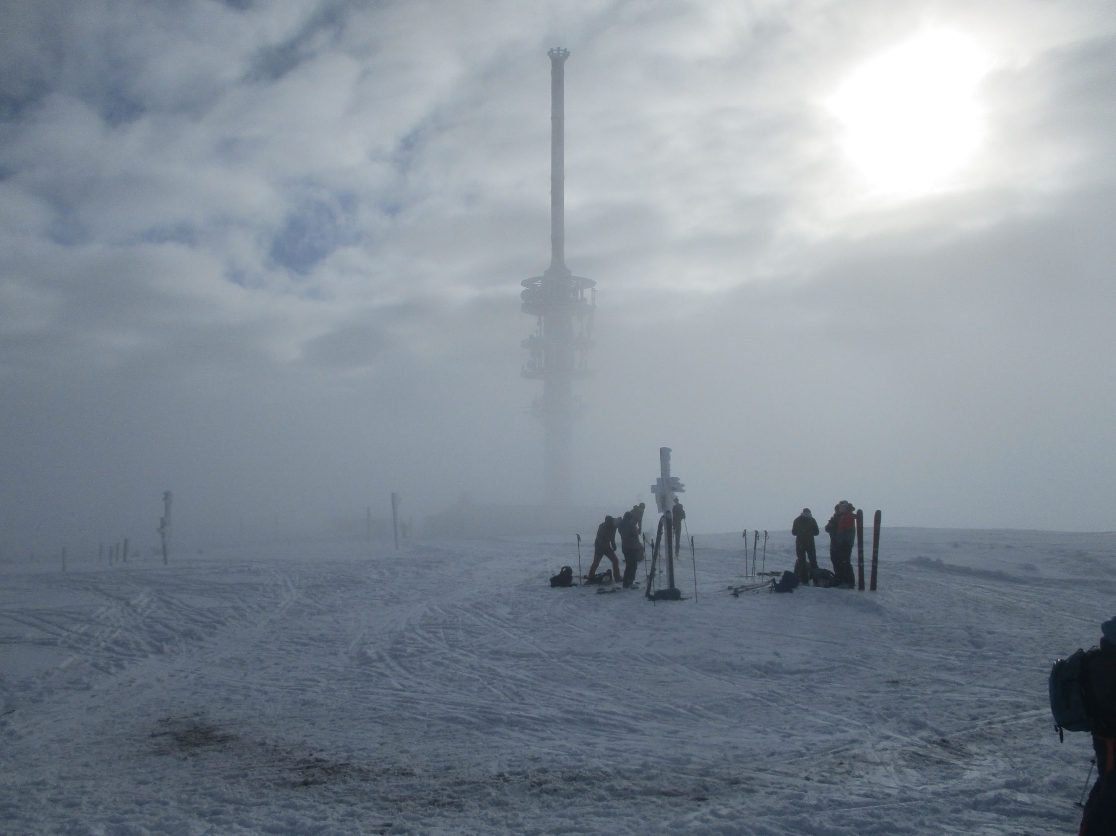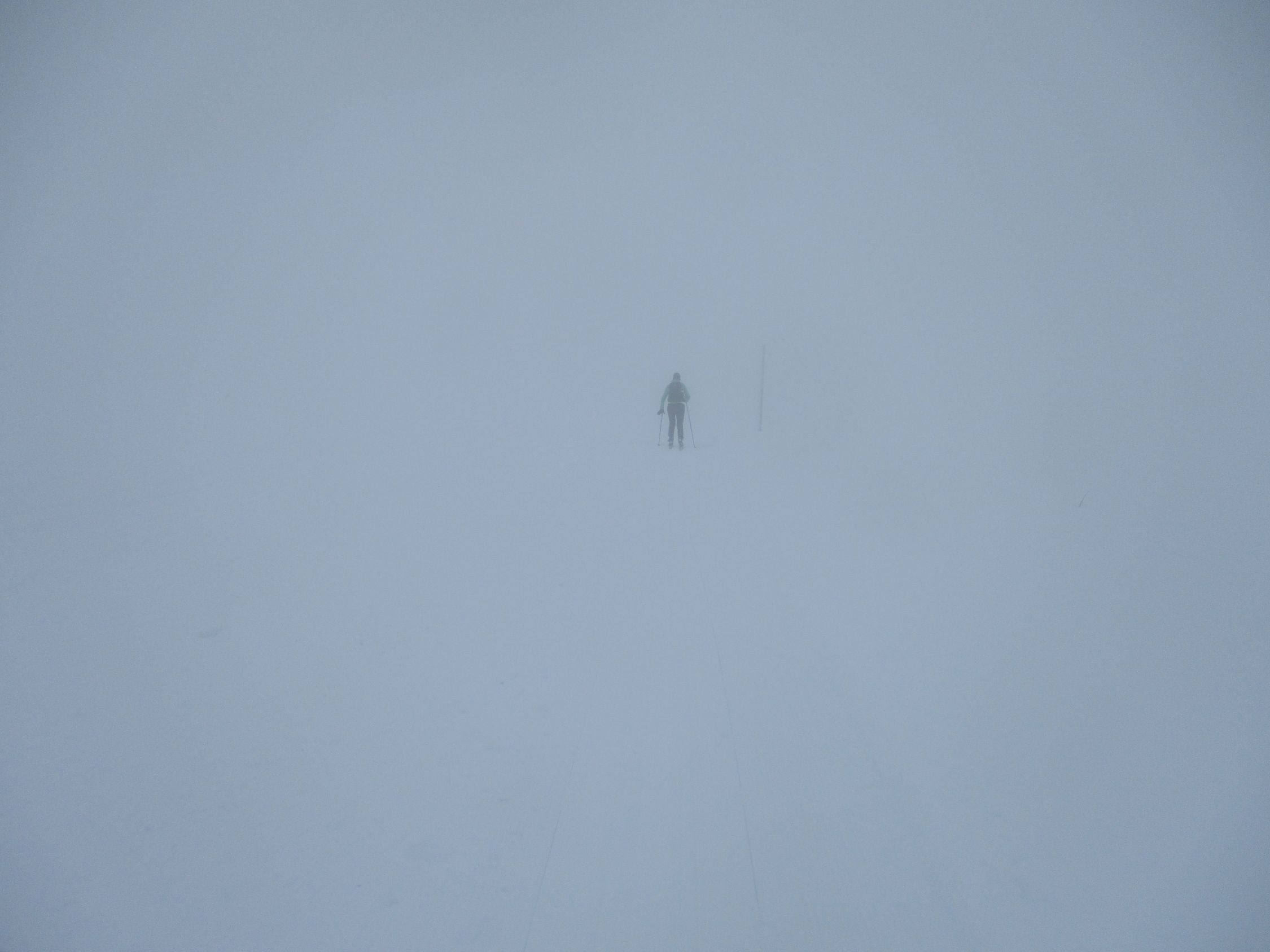 Bezüglich der Schneeüppigkeit und Qualität kann ein "ausgezeichnet" vergeben werden. Mit der Sonne wurde es zumindest im Zeitraum unseres Unterwegsseins 9.15 h - 14.30 h) nix. Nahezu Whiteout gar im Gipfelbereich, allerdings windarm und niederschlagsfrei.