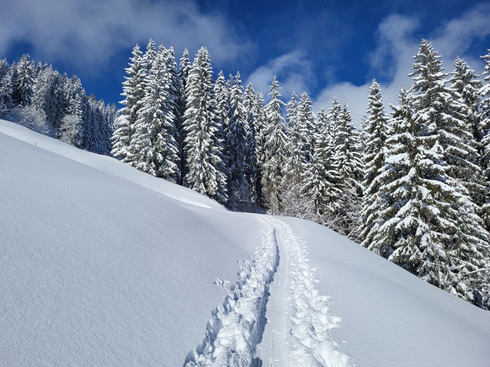 Pulver gut in der Region Schönried. Gute Spur auf dem Bodmerweg (Winterwanderweg) bis zum Rellerli und dann über den Hugeligrat zum Planihubel. Wunderschöne Pulverschneeabfahrt (es hat noch viel Platz für Spuren) über Vorderi Bergsimne ins Simne-Tal. Aufstieg in guter Spur ab Pt. 1442 über Lägerli - Bumeisteri - Hübschi auf das Wannehörli. Im Aufstieg teilweise wenig Schnee (besonders ganz oben) und schon leicht feucht. Abfahrt in Richtung Pt. 1516 in schönem Pulverschnee, aber nicht mehr so fluffig wie vom Planihubel. Diese Abfahrt war schon ziemlich verspurt.