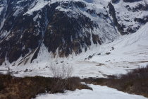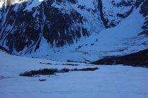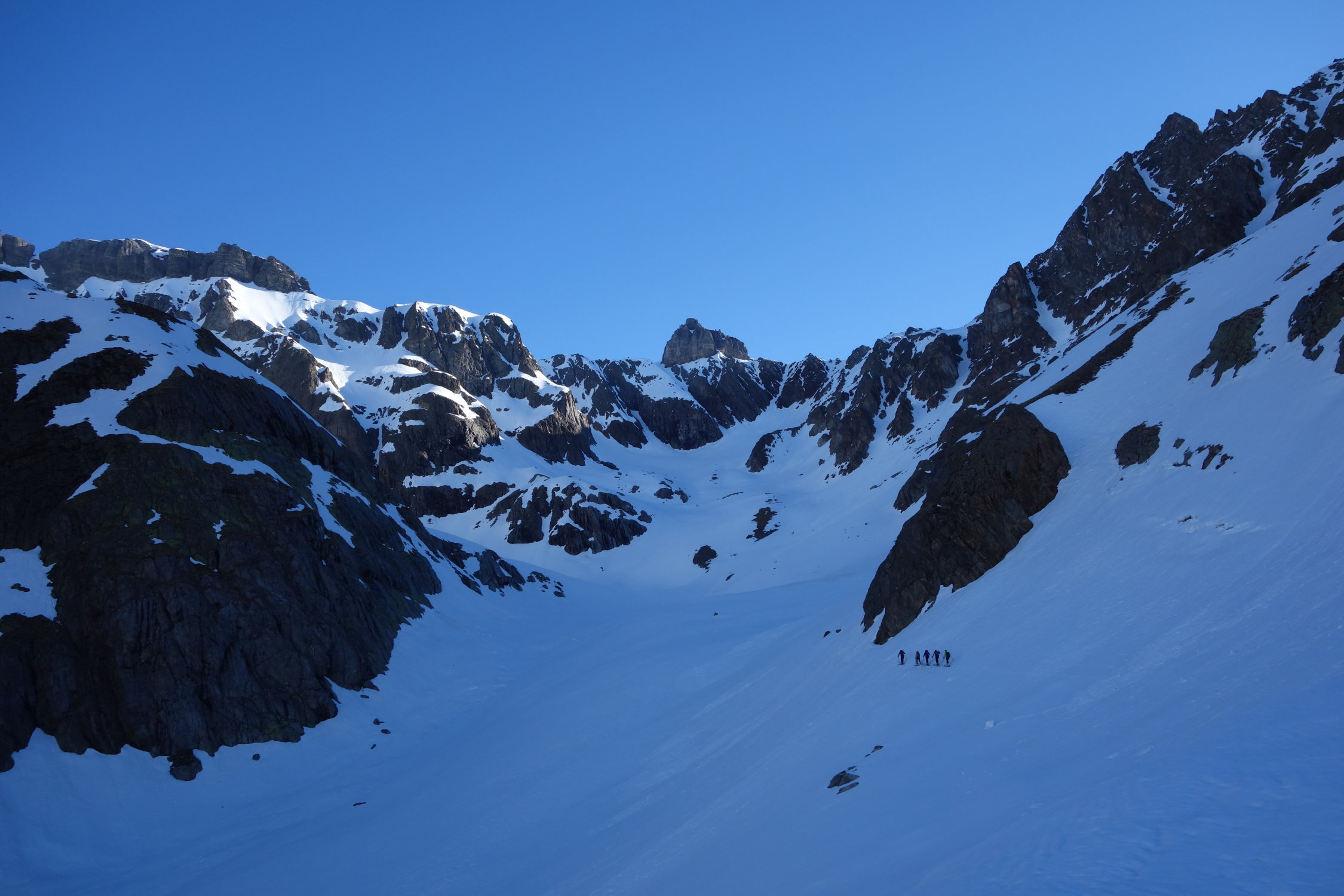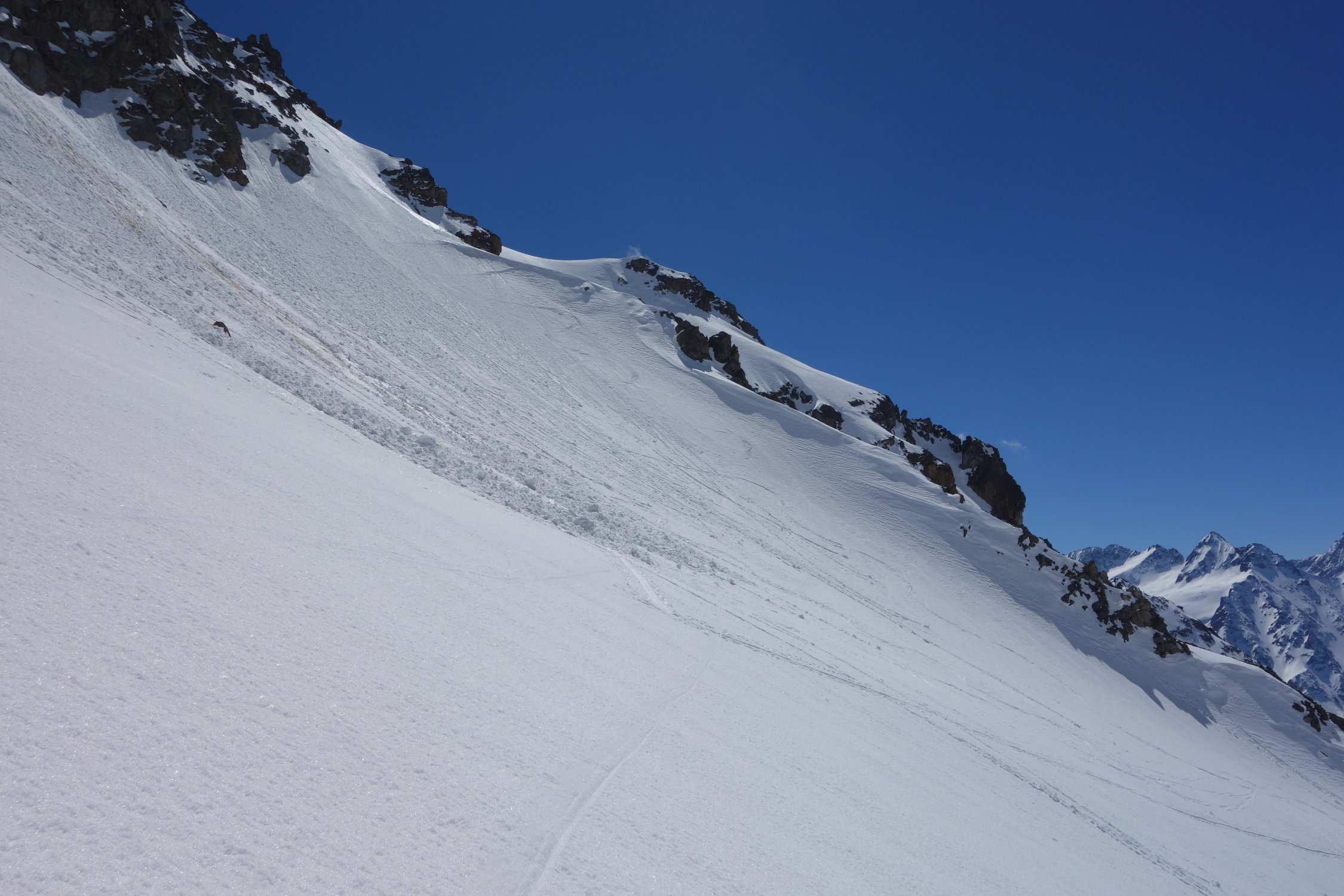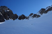 Im Chlialp-Tal zuerst ca. 20' Ski tragen. In der Wyssgand unglaubliche Massen von Lawinenschnee, am Morgen noch pickelhart.