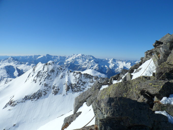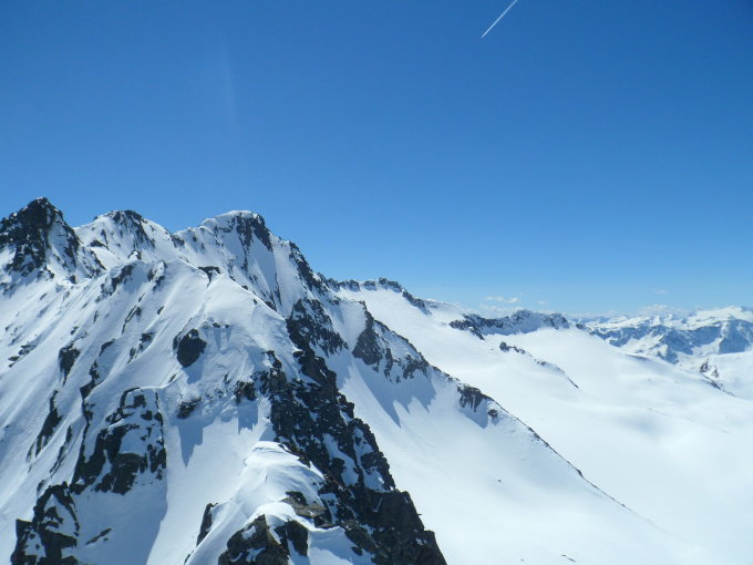 Zuerst Piz Ravetsch, dan Piz Borel (Skis mitnehmen, dann kann man direkt abfahren). Wir haben dann noch den Punkt 2858 zwischen dem Tgiern Ravetsch und dem Piz Alpetta angesteuert.