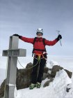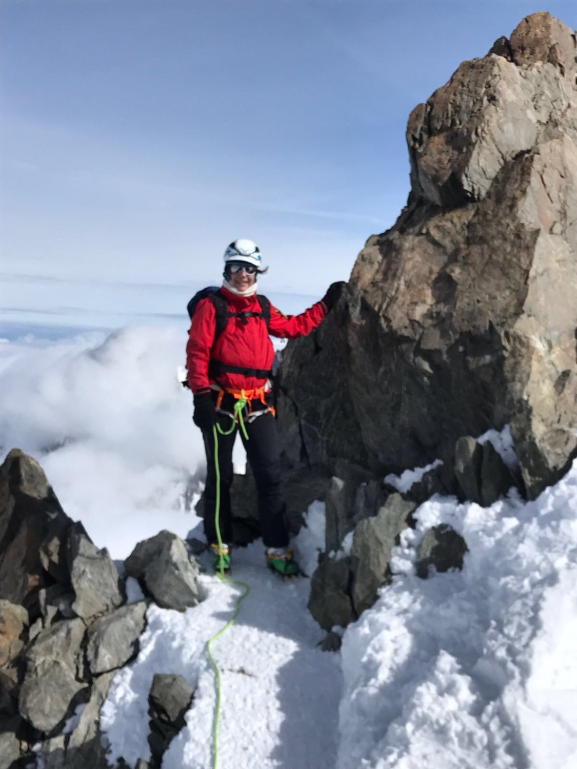 Im Nordwestgrat lag relativ viel Schnee und der Weg war gut ausgetreten. Wo keine Spuren im Schnee zu sehen waren, zeigten die hellen Stellen am Fels, wo die Bergsteiger die Steigeisen einsetzten. Nach einer leichten Kletterei (am nächsten Tag hatte ich mehr Muskelkater in den Oberarmen als in den Beinen) erreichten wir um 11 Uhr den Gipfel.