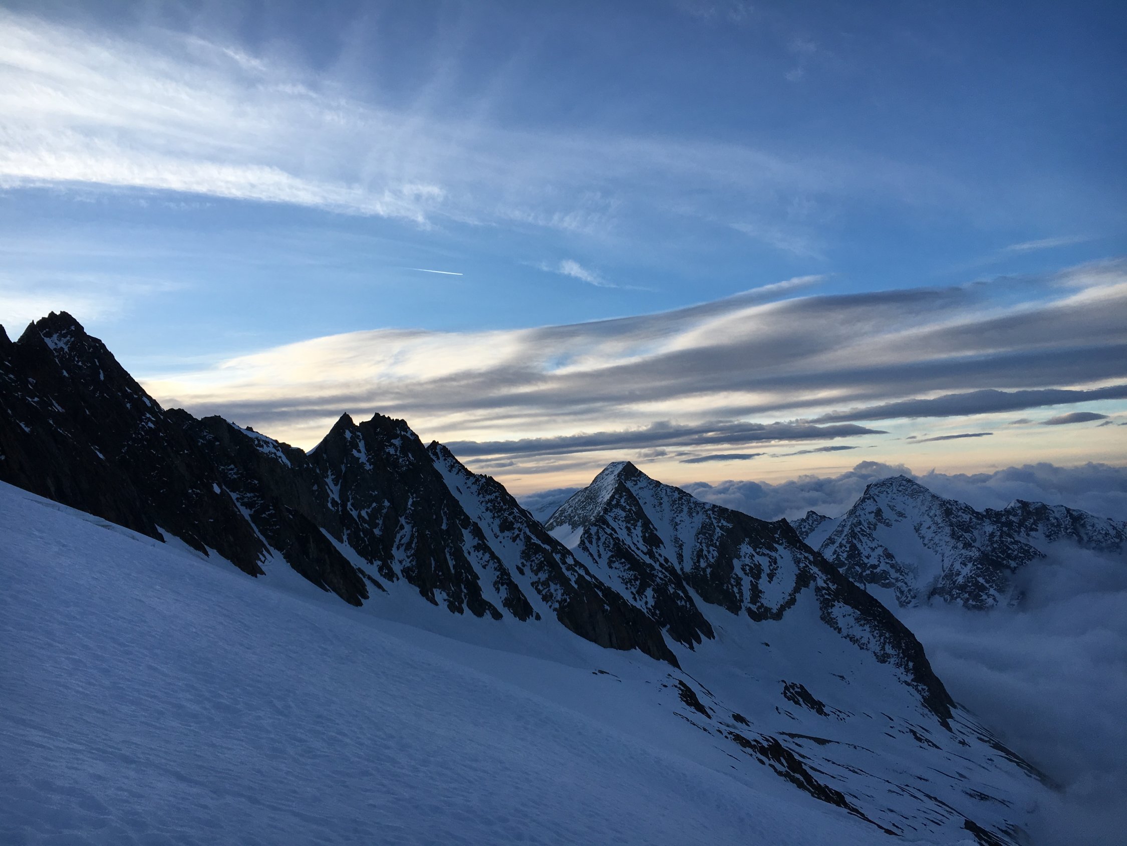 Die Abfahrt über den steinhart gefrorenen Gletscher strapazierte die Oberschenkel, aber ich war heilfroh, dass ich diesen Berg als Skitour gemacht hatte und nicht als Sommerhochtour, bei der ich zu Fuss absteigen hätte müssen.