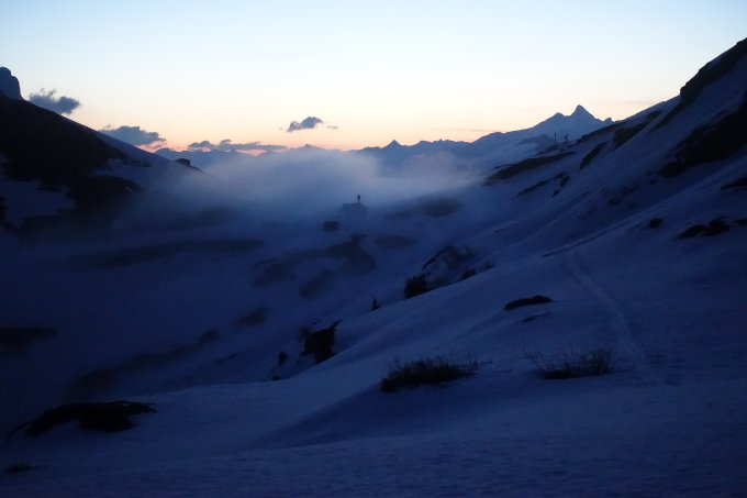 Die ersten zwei Kehren der Passstrasse müssen zu Fuss gegangen werden, danach geht's angenehm aufwärts im Schatten bis zur Chammlilücke auf gut tragender Schneedecke. Mit Harscheisen ist der ganze Aufstieg zur Lücke und auch über den Ostgrat gut machbar - die Steigeisen haben wir nicht gebraucht. Aufstieg zum Chammlijoch und herrliche Sulzabfahrt rund ums Rau Stöckli auf der Route 606a auf teilweise unzerfahrenen Hängen. Auch die Tüfelsjoch-Abfahrt wurde gemacht und sah gut aus.