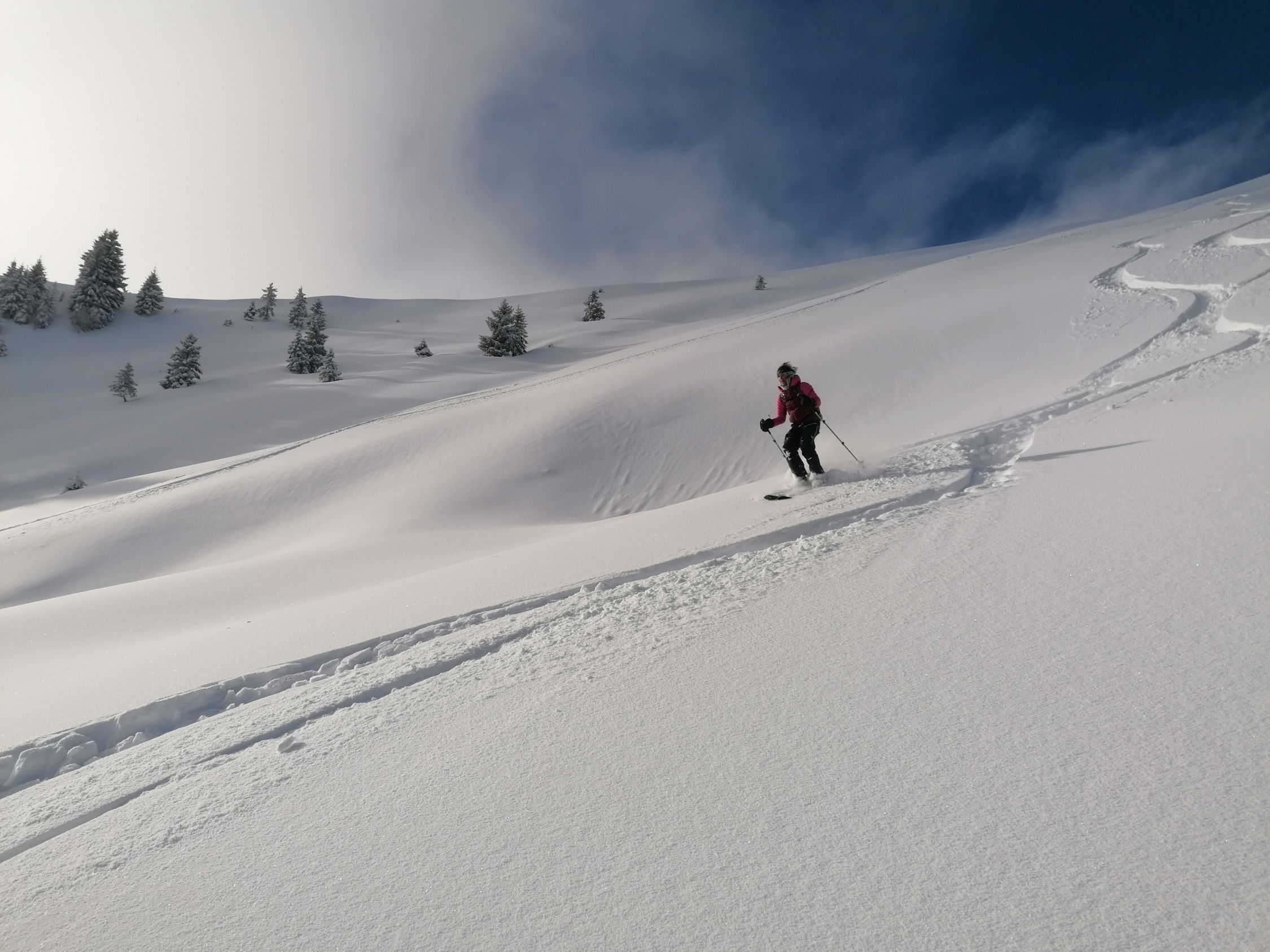 Grossartige und abwechslungsreiche Skitour Haute im Haute Gruyere, hoch über Lesoc. Der Vanil Blanc befindet sich in den Freiburger Voralpen. Dieser ist einer der ersten Gipfel zwischen dem Schweizer Mittelland und den Berner Alpen. Der Aufstieg erfolgt über die Alpe Ecosalla, und den wunderschönen Südrücken auf den Gipfel.
