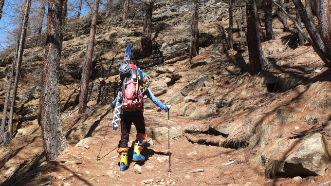 Start am Parkplatz Pravieux (1834m) und zunächst mussten wir erstmal ca. 300hm die Ski tragen. Eine geschlossene Schneedecke hat es erst oberhalb der Baumgrenze auf ca. 2200m.