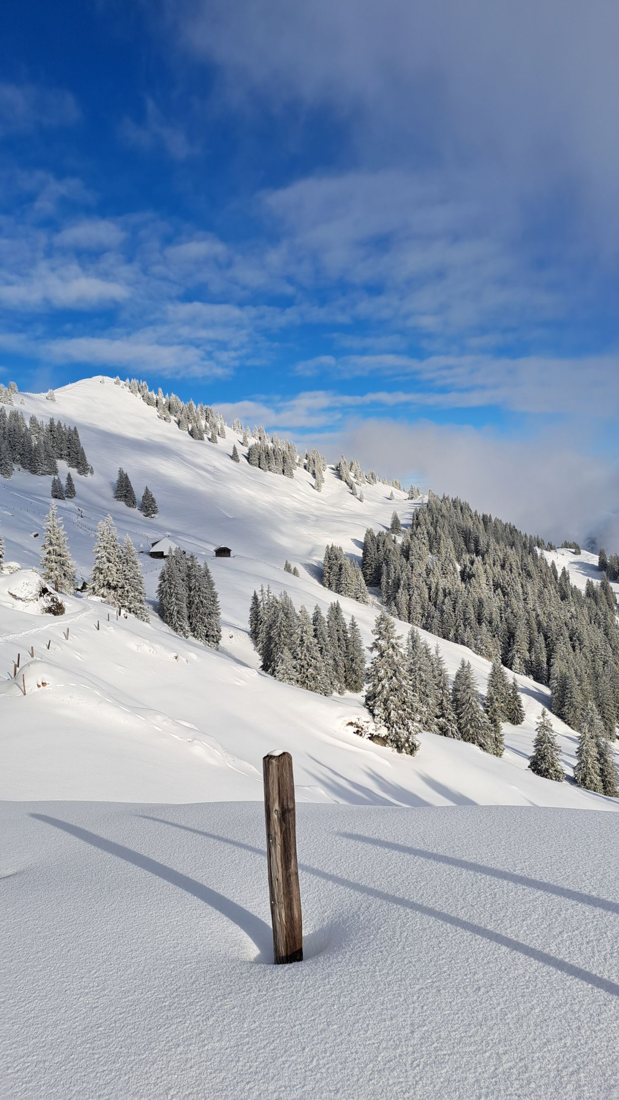 Im Schatten wird es sicher noch Pulver haben. Sonst denke ich, wird der Schnee bei diesen Temperaturen schnell schwer.
