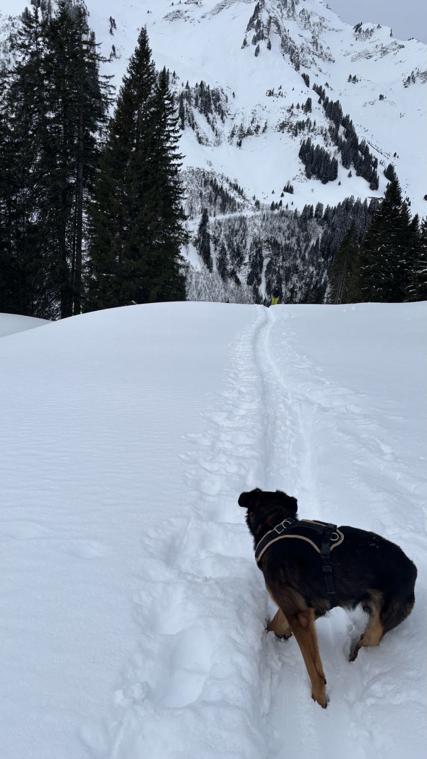 Leider hat es am Morgen in den Schnee geregnet und entsprechend klebte die weisse Pracht an den Fellen.