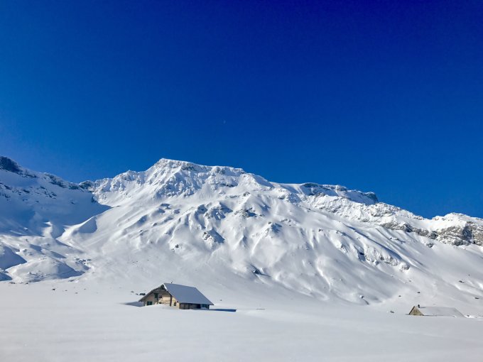 Trotz Meniskusverletzung und eigentlich abgeschlossener Tourenssison könnte ich es heute nicht lassen. Vollgepumbt mit "Ibuprofen" gings um 08:45 bei Sonnenschein und ohne Wind!! Richtung Wildstrubel. Auf der Engstligenalp ca. 10cm Neuschnee. Mit der Höhe Neuschneemenge zunehmend. Auf perfekter Spuranlage gings flot Richtung Frühstücksplatz. Auf dem Platteau davor war dann allgemeiner Besammlungspunkt. Zwei Führer spürten dann bis knapp unter den Übergang. Aufgrund der Neuschneemenge und der eisigen Unterlage könnte trotz vereinten Kräften heute der Übergang nicht fertig gespurt werden. Steigeisen haben gefehlt..