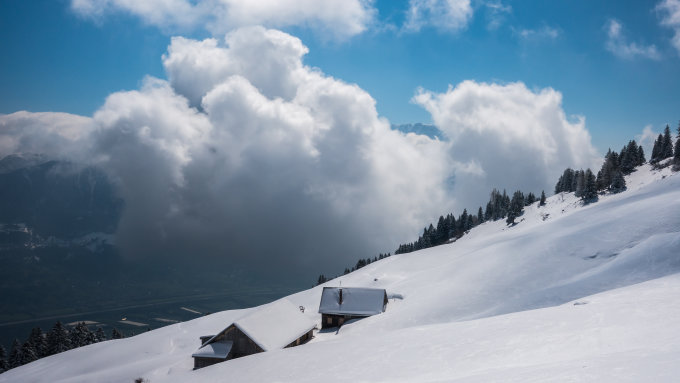 Im unteren Teil wird der Schnee schnell wieder wegschmelzen, darüber wird sich an Sonnenhängen bereits diese Nacht ein Harschdeckel bilden.