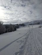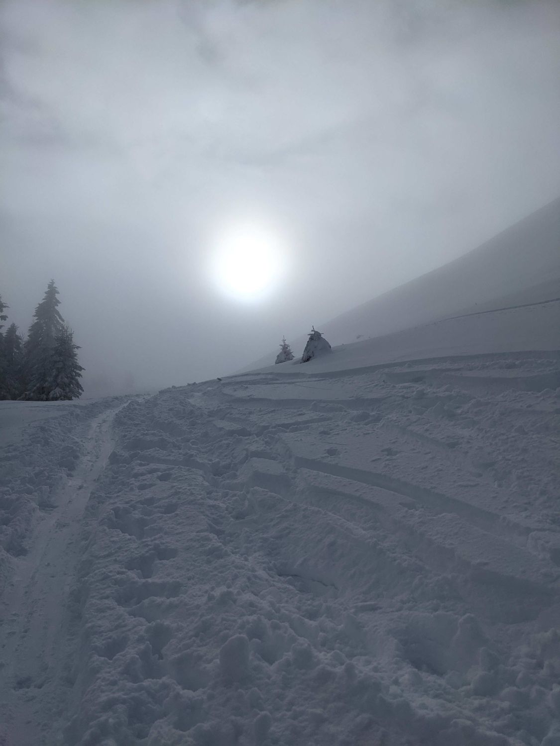 Start um 11:00 bei bedecktem Himmel und voll belegtem PP. Ausreichend Schnee mit leichtem Deckel. Viel Betrieb am Gipfel, Tourengeher, LL, Schneeschuhwanderer. Windstill und kalt.