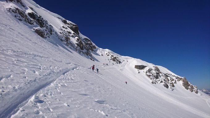 Übergang auf die Wechte funktioniert nun problemlos auch ohne Steigeisen. Bei einer klaren Nacht bestimmt nochmals Topverhältnisse!