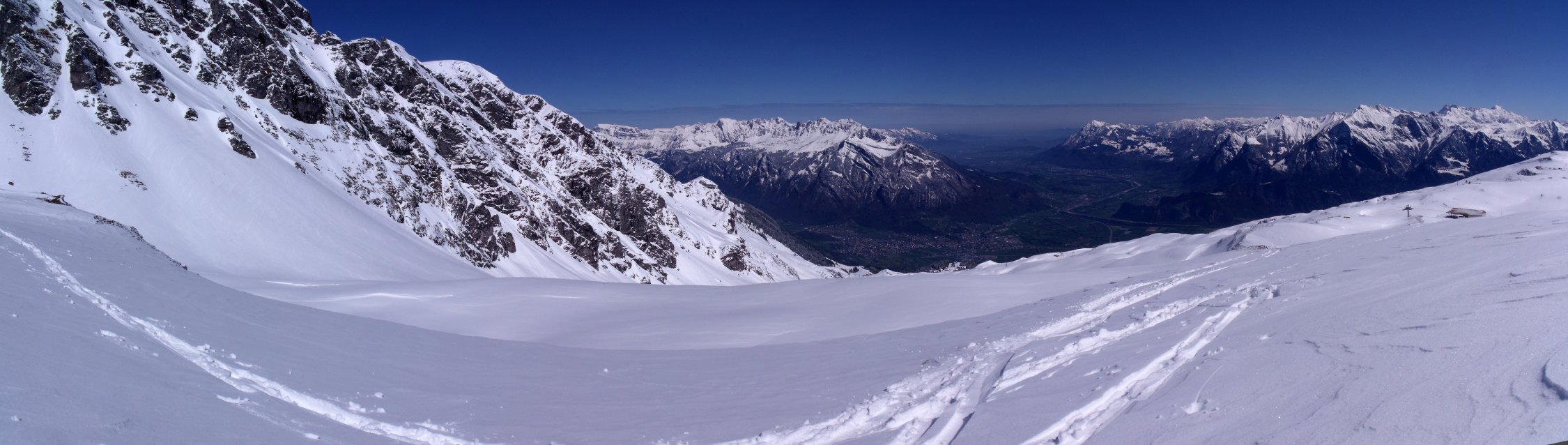 Wir sind ab der Mittelstation im Schnee losgelaufen und haben wunderschöne Verhältnisse angetroffen. Weitgehend Pulverschnee und erst in den untersten Hängen über der Mittelstation Nassschnee. Leider haben sich aber an den Fellen "meterhohe" Stollen gebildet und so war nach dem Twärchamm bzw. bei der Wildseeluggen fertig lustig und wir haben umgedreht. Das war dann einfach zu mühsam!