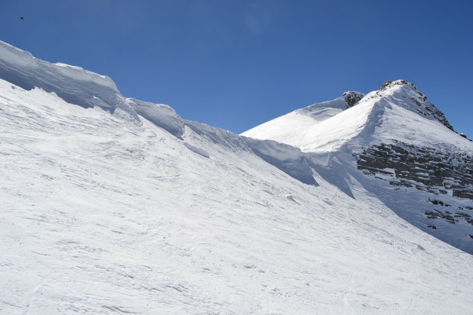 Wer gerne Pistenverhältnisse hat, würde vermutlich sogar ein "Ausgezeichnet" vergeben. Schnee noch durchgehend vom Hospiz bis zum Gipfel und zurück. Heute war es offenbar wesentlich angenehmer als gestern bezüglich den Temperaturen und auch die untersten Hänge vom Panetone weg waren sogar schöner Sulz, wenn man längere Pausen eingeschaltet hat (beim Panetone ca 13:30). Querung unter Hübschhorn mit guter Spur. Harscheisen empfehlenswert.
