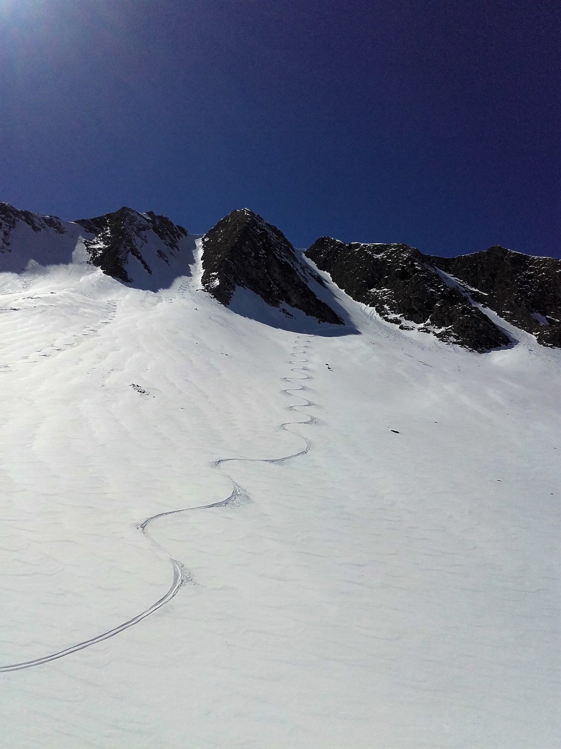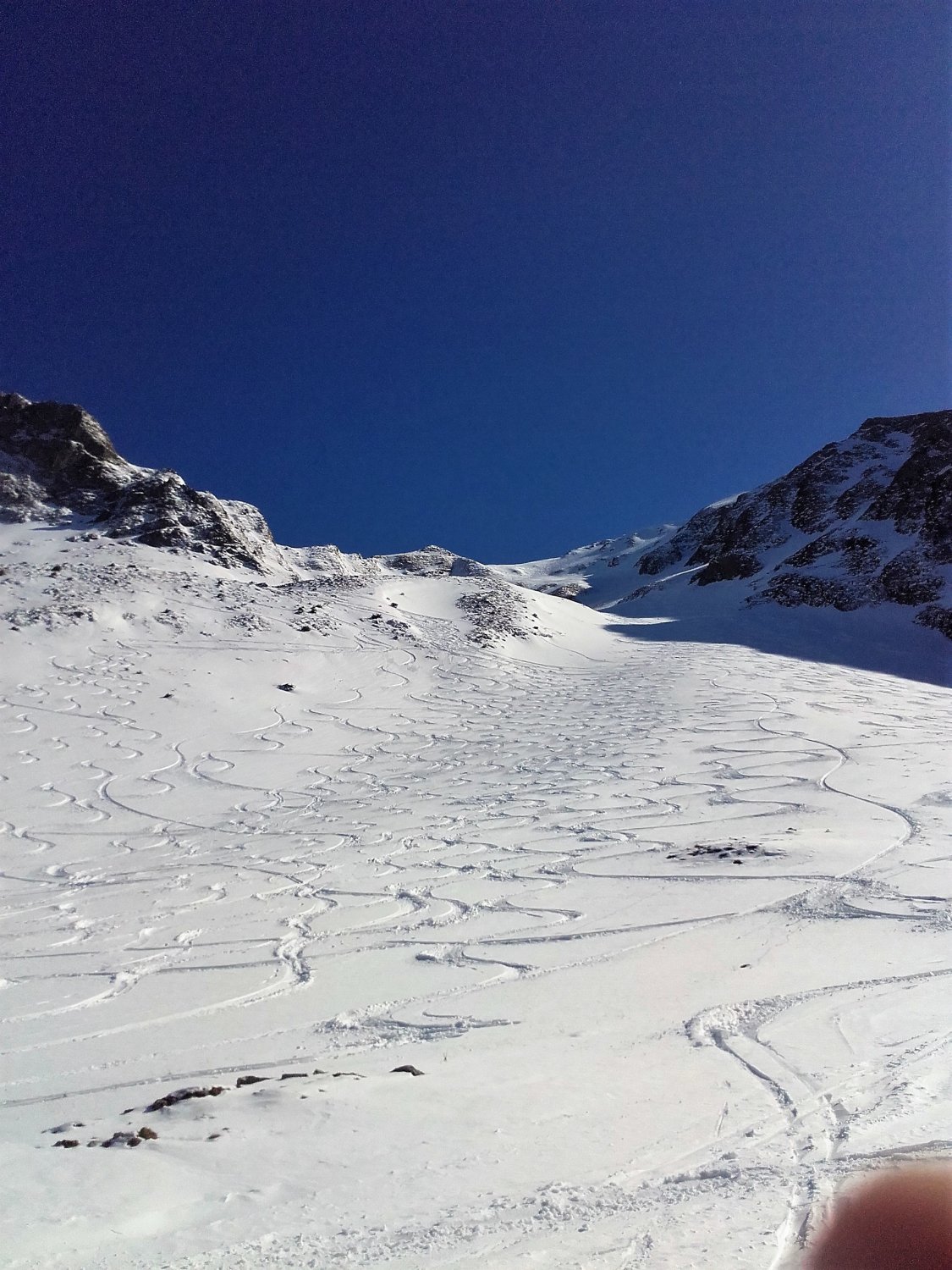 Passuebergang ist bestens begehbar. Ich fuhr das Ost- Couloir und den Nordhang, bei beiden noch Pulver- Gut!!!