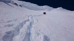 Aufstieg und Abfahrt ab und bis ca. 100 Höhenmeter über dem Autoparkplatz erster Schranken nach Realp möglich (ca. 1750m). Durchgehende Schneedecke. Vom Skidepot zum Nordgrad haben wir über ein durchgehendes Schneefeld eingespurt. Das war eine ziemlich langwierige Wühlerei. Die Wechte wurde etwas mit der Schaufel präpariert, damit die letzten zwei Meter absolviert werden konnten. Sollte nun jedoch etwas einfacher machbar sein. Die Wächtenkannte ist jedoch um einiges Höher als noch vor drei Wochen an der selben Stelle (damals kaum Hüfthoch, nun Mann/Frauhoch;-). Auf dem anfänglich flachen Stück auf dem Nordgrat hat es auf einer Länge von ca. 20m blankes Eis das zurzeit noch über ein Schneeband auf griffiger Spur durchgangen werden kann. Relativ einfacher Aufstieg in wenig aber genügend und für Steigeisen sehr griffigem (ich würde sagen, optimalem) Schnee zum Gipfel ab dem Grat. Dasselbe gilt für den Abstieg. Abklettern über die Wechtenkannte bei aktuellem darunterliegendem Pulver problemlos.