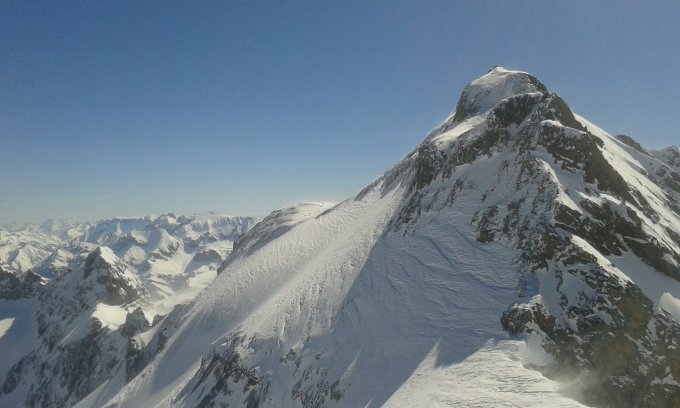 Bis zum Iswändli sehr angenehm mit guter Spur zugehen. Danach sehr windig. Die meisten sind nur bis zum Skidepot. Ich habe dann den Grat bis zum Gipfel in teilweise hüfttiefer Wühlerei gespurt. In der Querung nach dem ersten Aufschwung ist die Kette nicht frei.