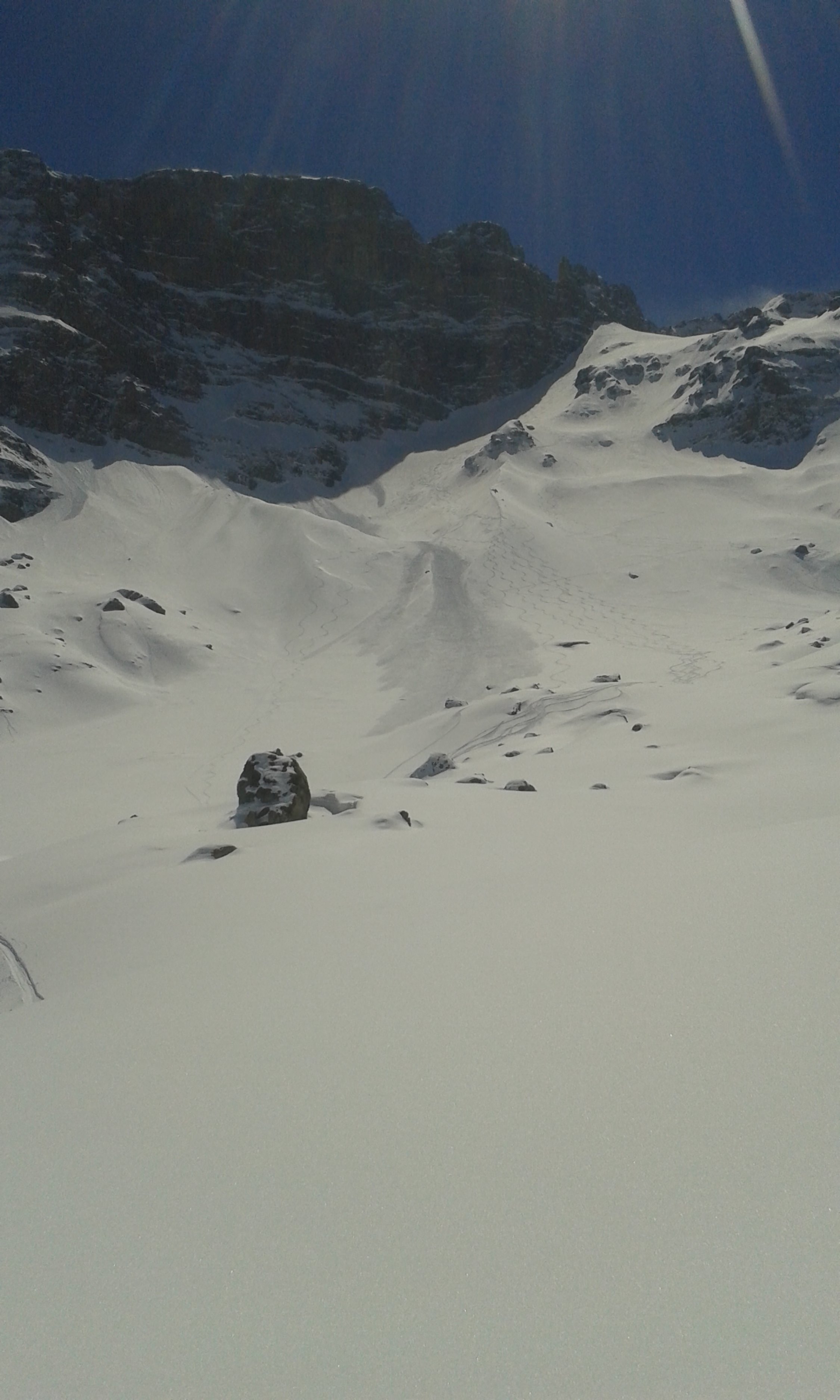Ausser Nordseitig ist der Schnee jetzt ziemlich nass -> Deckel am Morgen, gutes Timing wichtig. Es hat ziemlich viel Schnee gegeben, also noch lange lohnenswert.