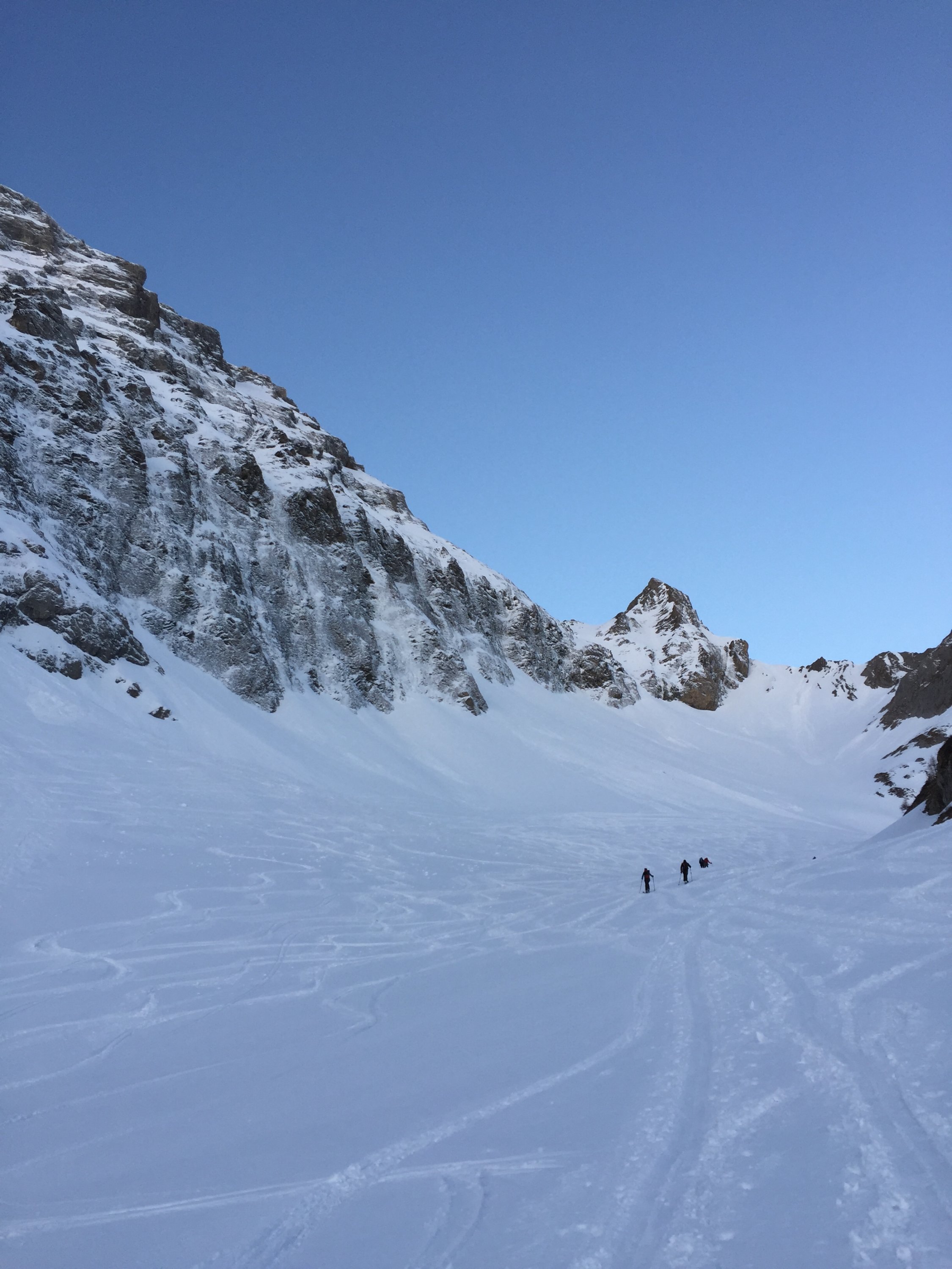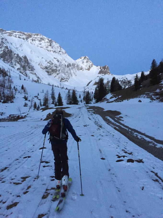 Abfahrt wie Aufstieg, in gutem Pulver, sind vor dem Chilchli runter hier auch guter Pulver für schöne Bögen. Ab Hütte dann feucht, später nass.