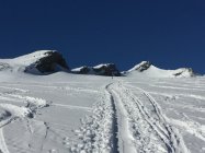 10 Minuten Ski tragen und dann gehts los. Unten knapp, ab Groppi genug Schnee. Bis zum See gefroren da vom Vortag nass, besser neben der Spur hochlaufen. See noch gut zugefroren. Ab See gute Spur, sind über den Tungelgletscher hochgelaufen, gute Spur und oben problemlos über die Wächte.