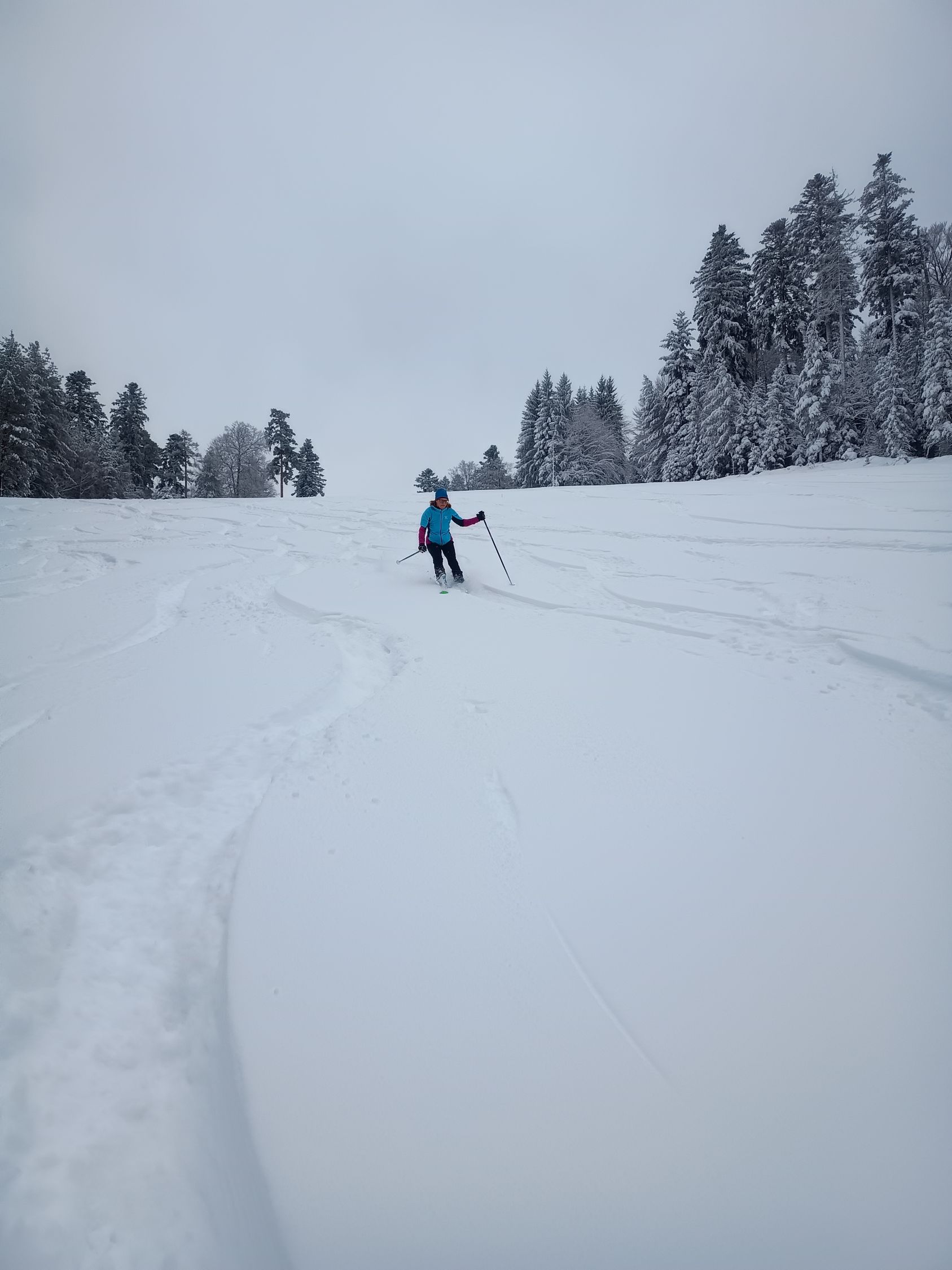 Hirsckopfskihang über Waldwege zur Bergstation und über den Skihang ins Tal