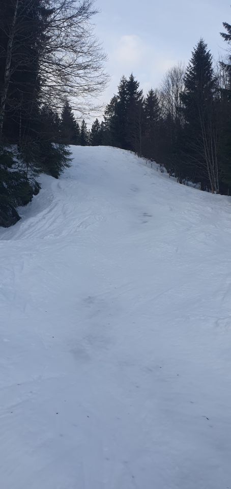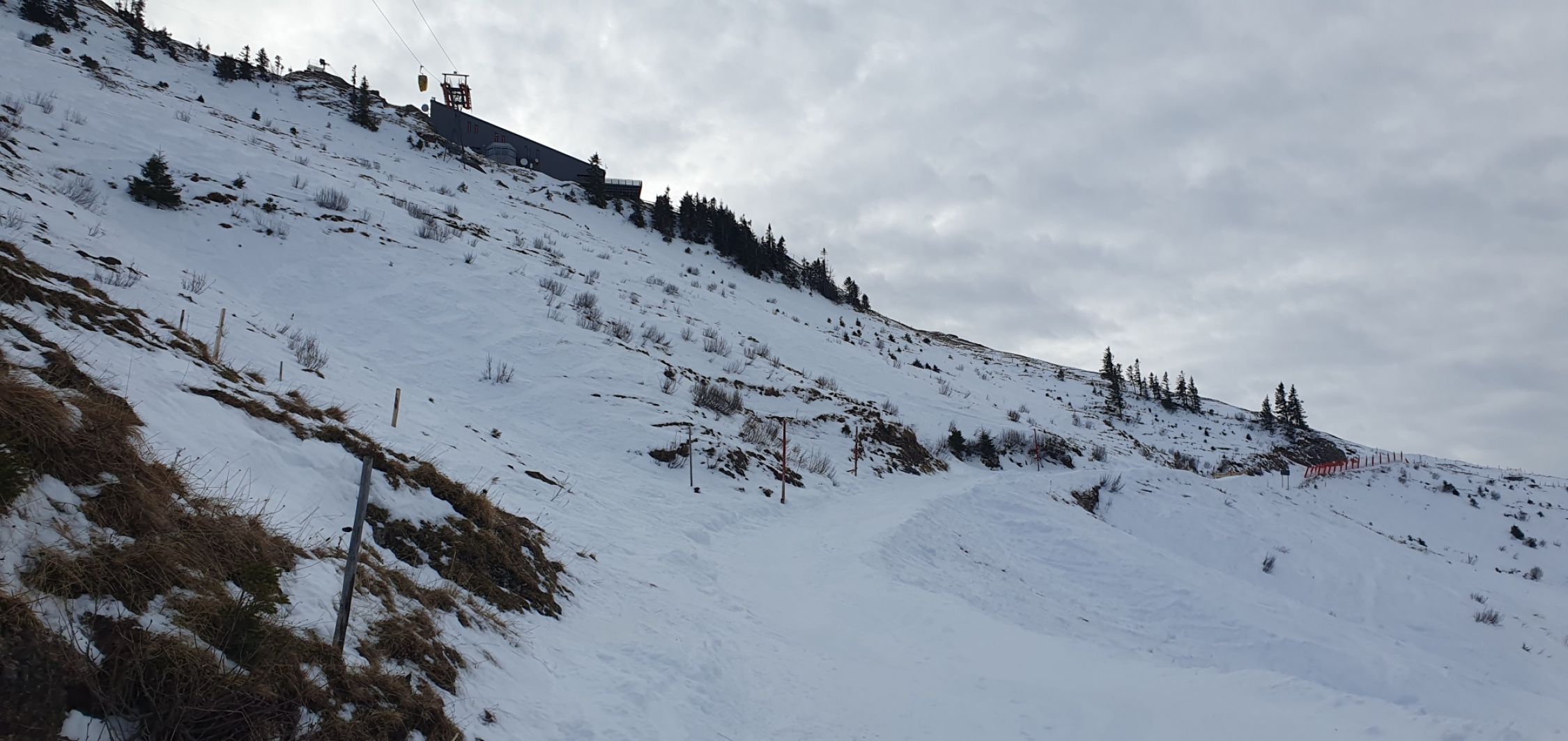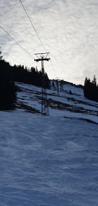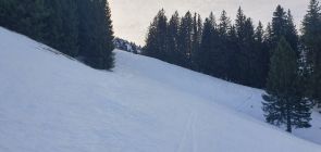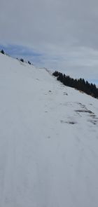 Am Hochgrat hat es deutlich weniger Schnee als rund um Oberreute. Heute ging der Aufstieg und die Abfahrt gerade so ohne Tragepassagen - wenn man den richtigen Weg wählt. Abfahrtsgenuss sieht anders aus: Oben hart und glatt, im Gipfelhang teilweise brüchig, bei der Oberlauchalpe schön zu fahrender Sulz (immerhin!), im Bereich des Ahornhang Suche nach genügend Schnee für Schwünge zwischen Dornen, Steinen und aperen Stellen.