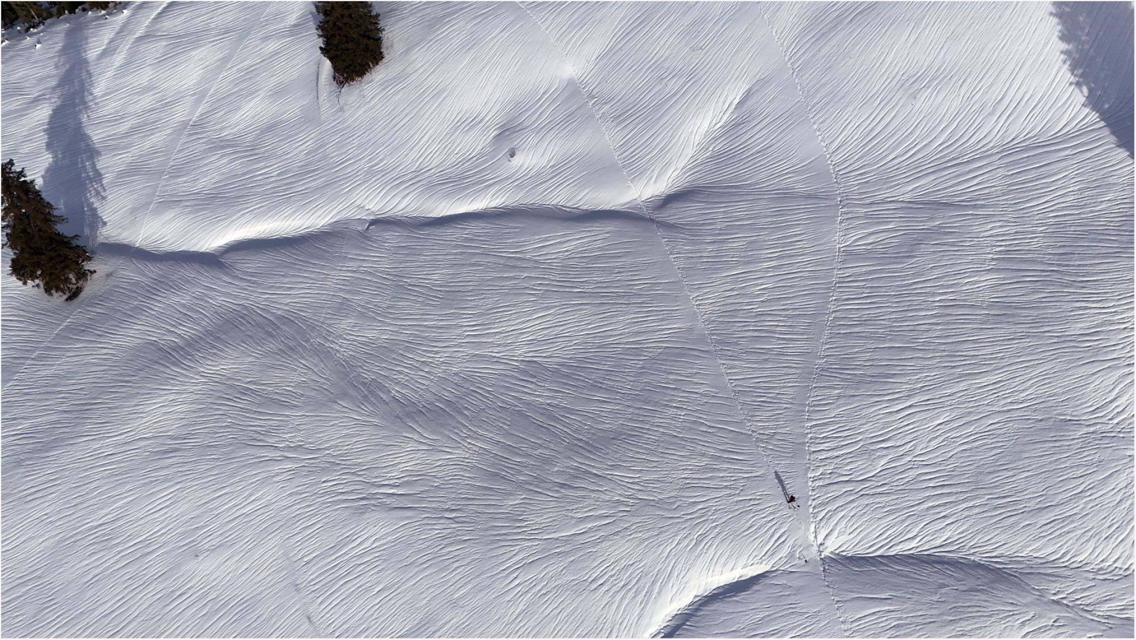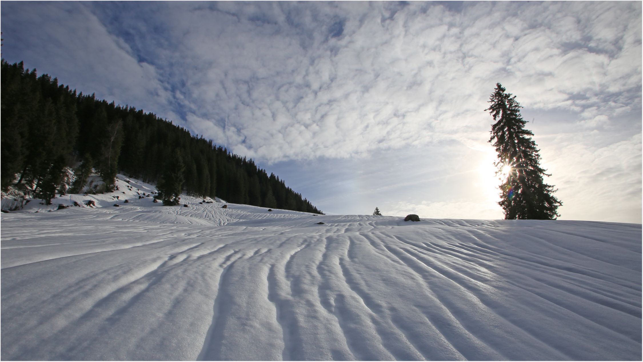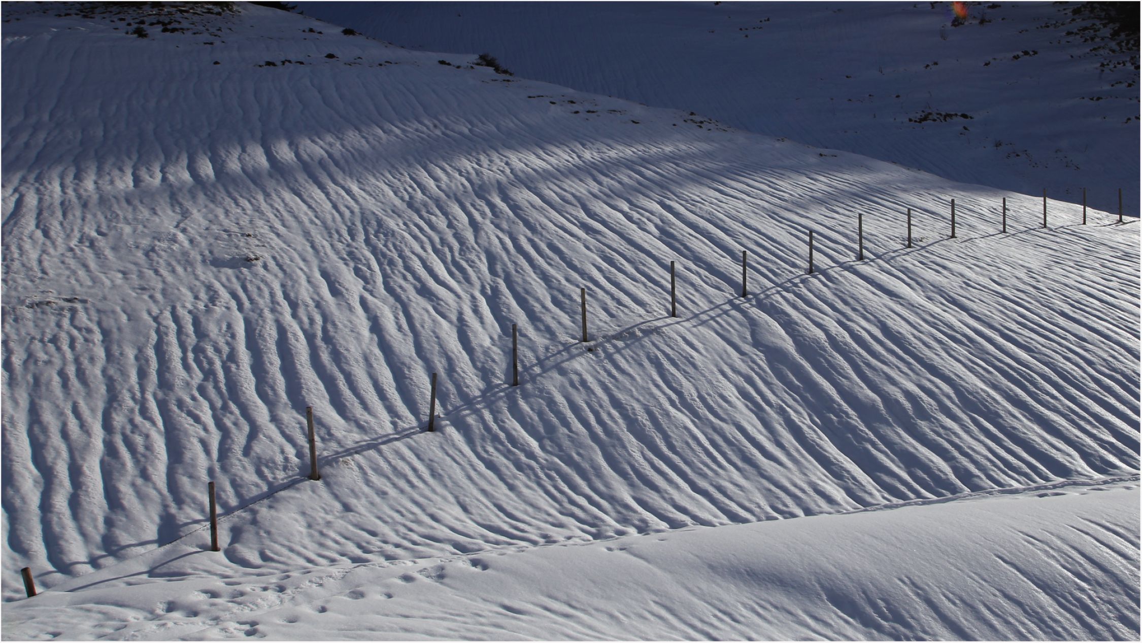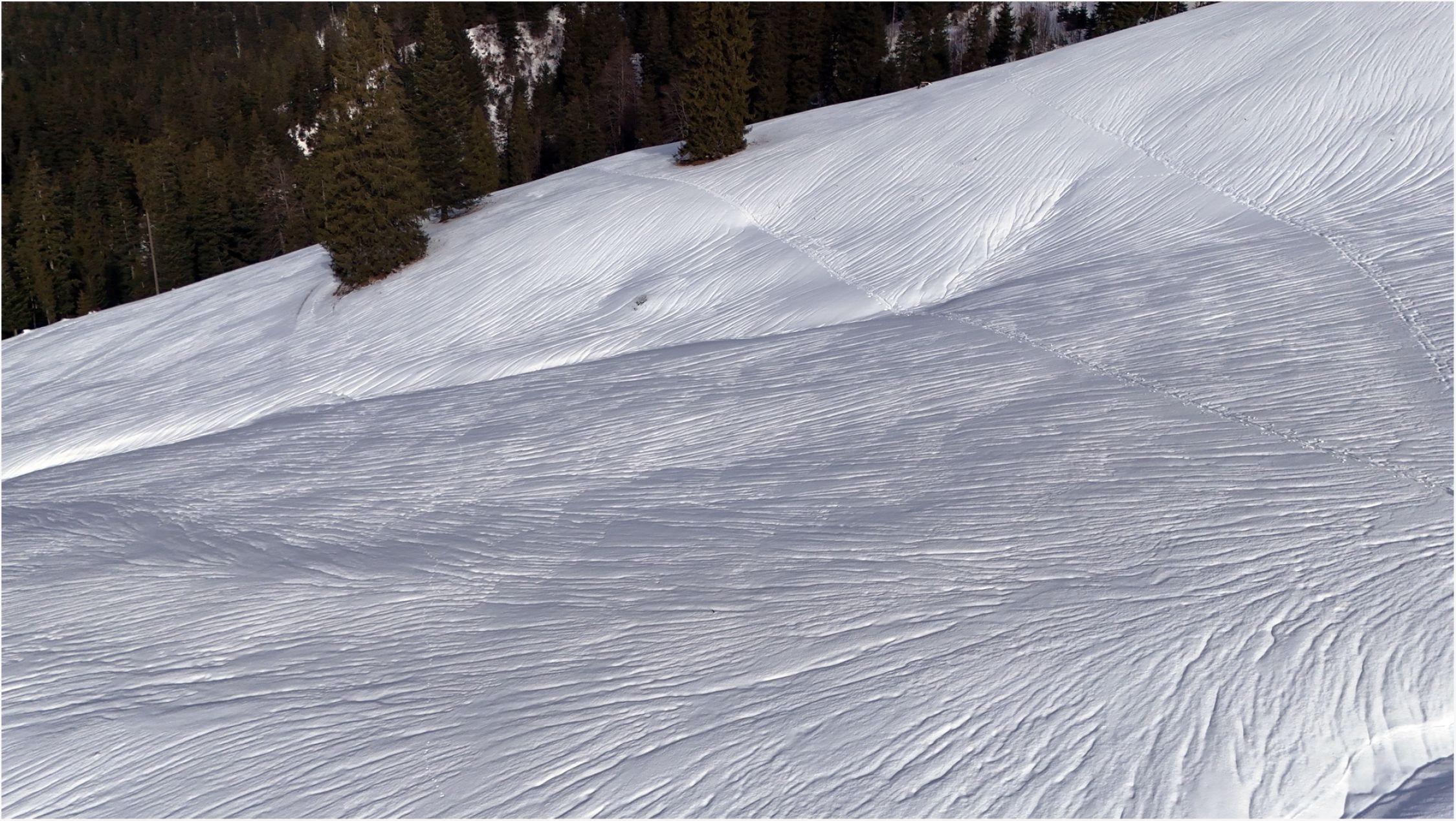 Der Regen hat ganz tolle Strukturen im Schnee hinterlassen, ein schönes Bild.
