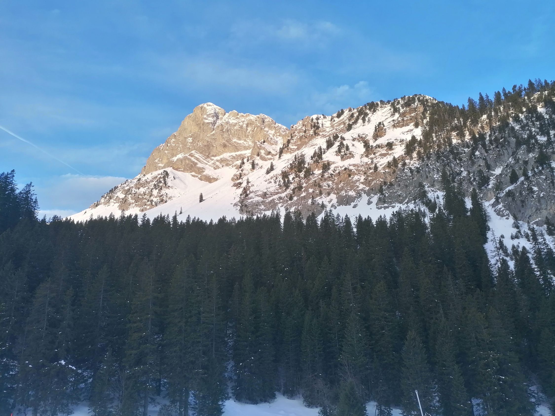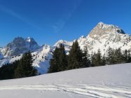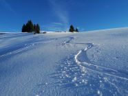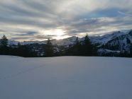 Ausgezeichnet: D.h. Kaiserwetter, Windstill und mild. Die Waldschneisen hatten immer noch wunderbaren Pulverschnee. Der Aufstieg und die Skiabfahrt ist nordseitig gelegen, und hier hats lange Pulverschnee.